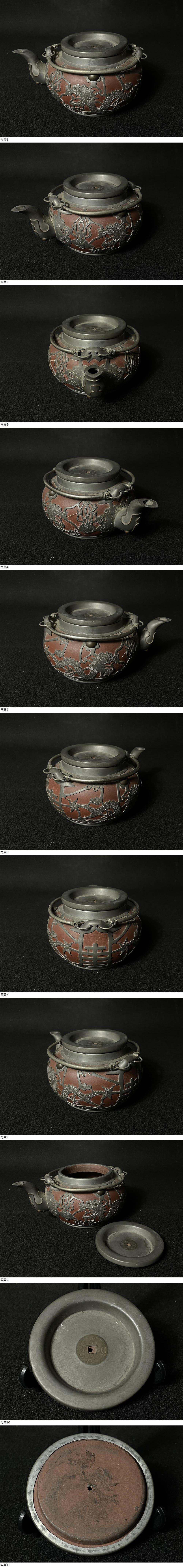 | 中国美術 威海衛 同慶順造 朱泥双龍透錫装飾急須 覆輪 光緒通宝刻蓋 細密細工 唐物 煎茶道具 |