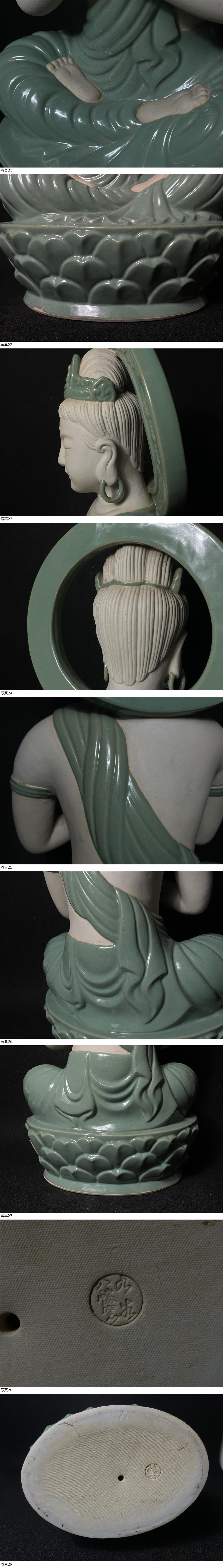 | 仏教美術 青磁観音菩薩座像 九谷焼 八幡窯 時代 仏像 高さ約48.5cm |