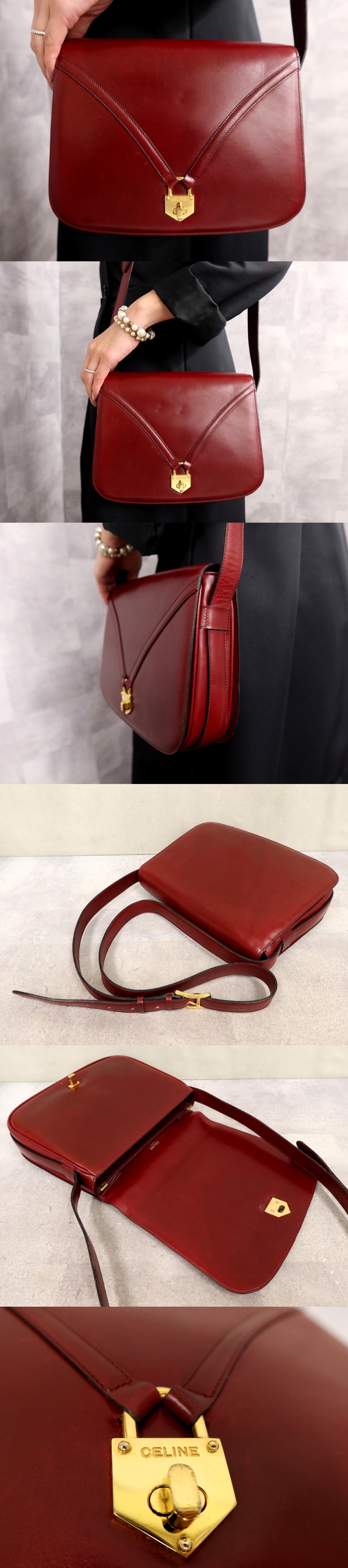 ●超美品●CELINE セリーヌ●フラップ●カーフ レザー 本革●ショルダー バッグ●レッド●ゴールド金具●肩掛け●収納 かばん●Js64438 收藏