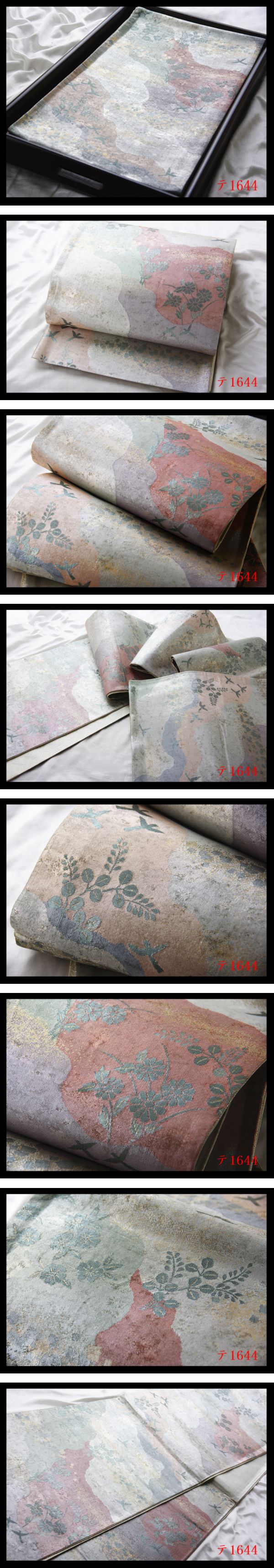 蔵【テ1644】厳選逸品 道長花鳥紋 シルバー色地 気品豊かに 正絹六通高級美術袋帯 ◇検◇簪着物名古屋帯和装小物帯締め 收藏