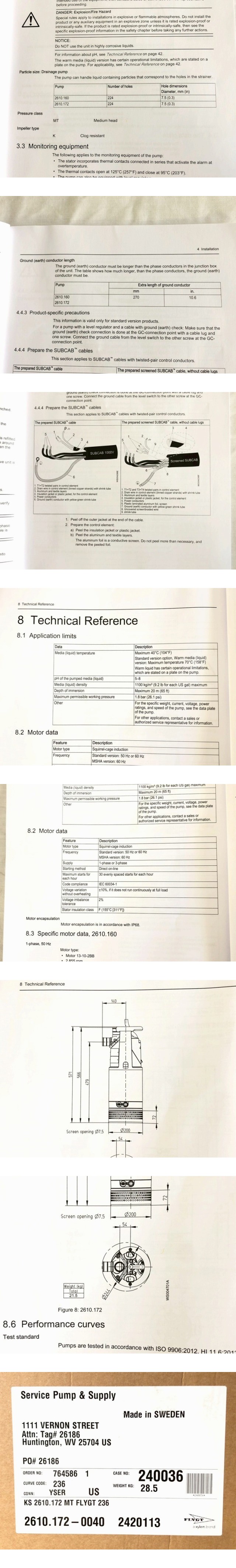 【米軍放出品】未使用品 水中ポンプ 電動排水ポンプ FLYGT KS2610 MT 1.4kW(1.9HP) (180) ☆BA29BK-W#26 收藏