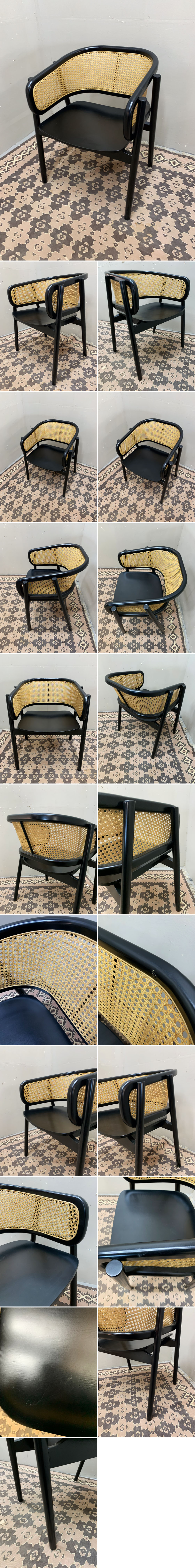 ■EM056A/未使用保管品/モダンデザイン/ラタン/アームチェア/黒 /木製フレーム/籐編み/ダイニングチェア/北欧スタイル 收藏