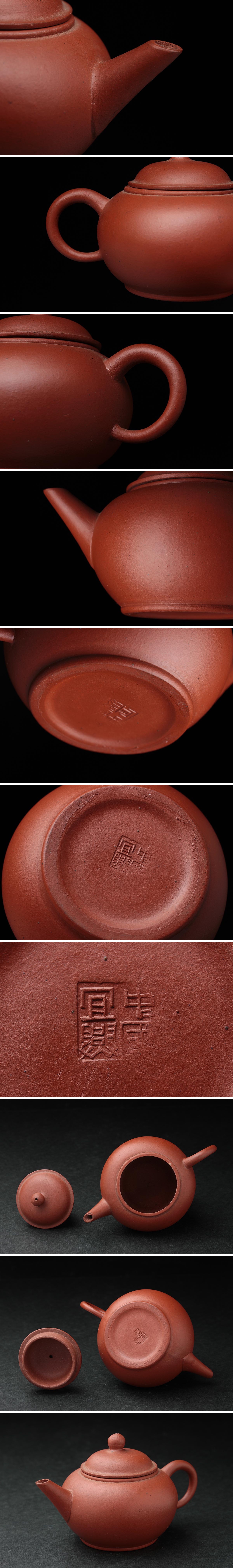 JP807 中国宜興 朱泥 砲口 急須・紫砂壺 幅9.5cm・中国急須 茶具 茶器 唐物 中国古陶 煎茶道具 收藏