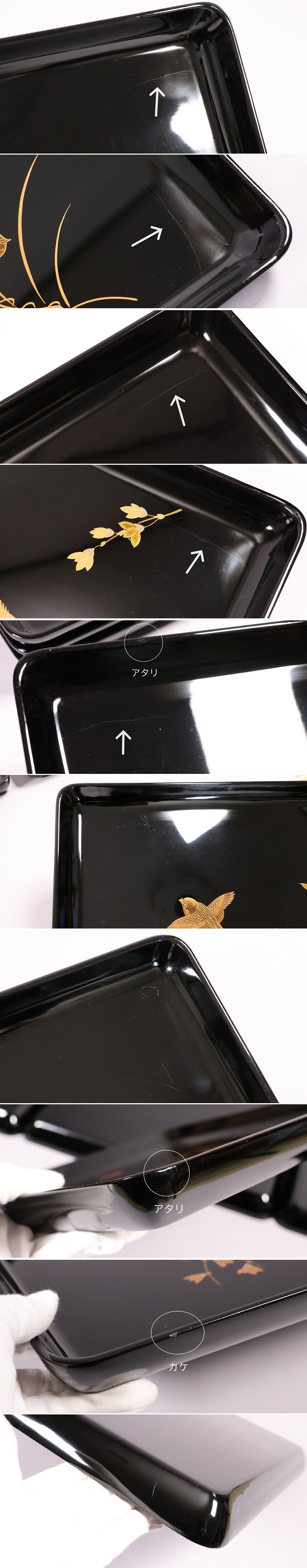 天然木漆塗 花鳥絵替金蒔絵 黒塗卓上膳十客
