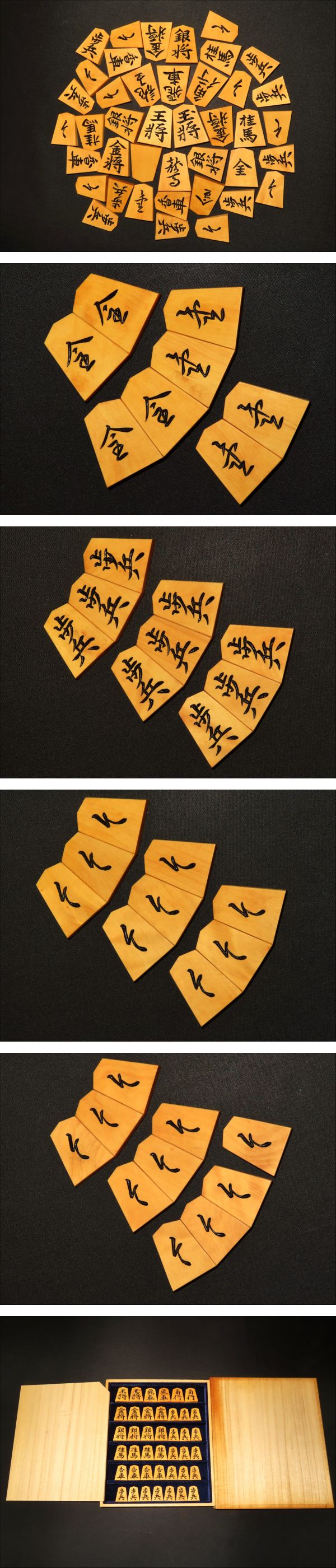 木地は御蔵島黄楊。全ての駒の表裏をUPいたしましたので是非ご覧ください。
