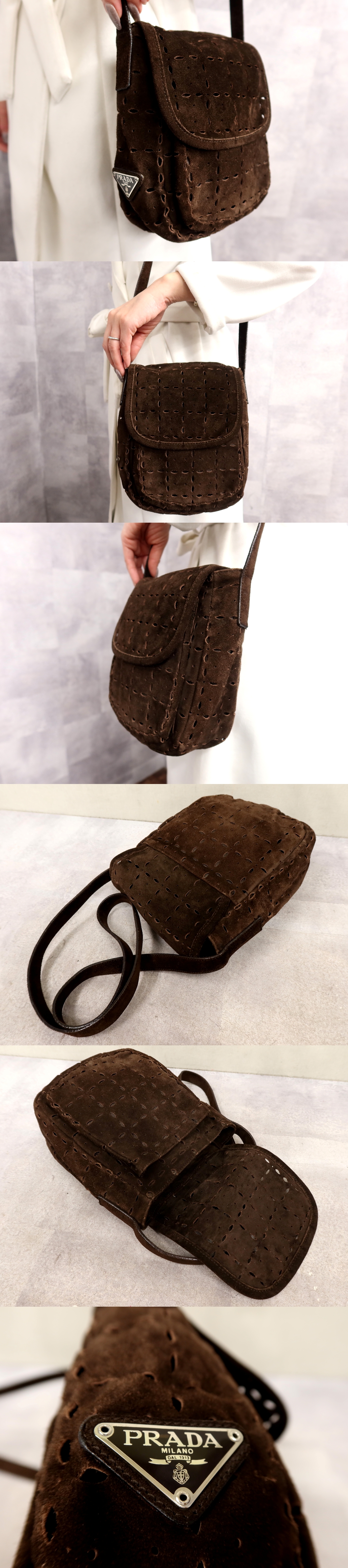 ●超美品●PRADA プラダ●三角ロゴプレート●スエード レザー 本革●ショルダー バッグ●ブラウン●SV金具●肩掛け●ヴィンテージ●Js64911 收藏