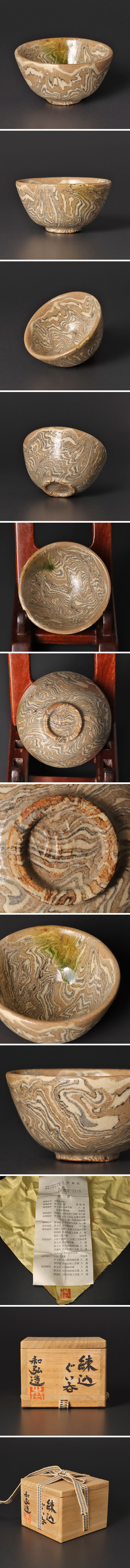 備前焼の里で研鑽を積み、練込技法の第一人者として知られる三村和弘氏による、緻密な美しさが宿る「練込ぐい呑」でございます。 本作の最大の見どころは、色の異なる土を幾重にも重ね合わせ、成形する過程で生み出される「練込」ならではの幾何学的な紋様です。三村氏の卓越した技巧により、土の層がまるで地層や年輪のような自然界の律動を感じさせ、一作品ごとに異なる唯一無二の表情を描き出しています。緻密に計算された文様でありながら、炎の洗礼を受けることで生まれる予期せぬ揺らぎが、作品に柔らかな生命力を与えています。 造形は掌に心地よく収まるサイズ感でありながら、高台から口縁にかけてのラインは非常に端正で、洗練された緊張感を湛えています。焼締ならではの、釉薬に頼らない土そのものの質感は、使い込むほどに酒が馴染み、しっとりと艶やかな風合いへと育っていく楽しみを与えてくれます。 共箱には作家自らの筆による題字と落款が記されており、手仕事のぬくもりと芸術性が共存する真作であることを証しています。日々の晩酌を至高のひとときへと変えてくれる、工芸美溢れる酒器。三村氏が追求する「土の重なり」が生み出す奥深い世界を、ぜひお手元で末永くご愛用ください。 ★商品は三村和弘の作品である事を保証致します。 |