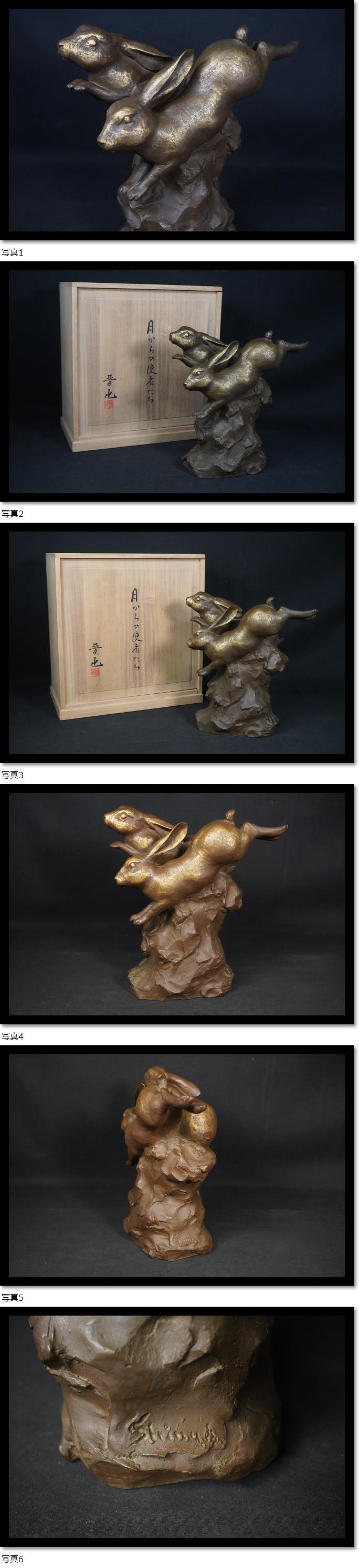中村晋也 月からの使者たち 兎 金属工芸 彫金 3、7kg 共箱 ウサギ 銅像 ブロンズ像