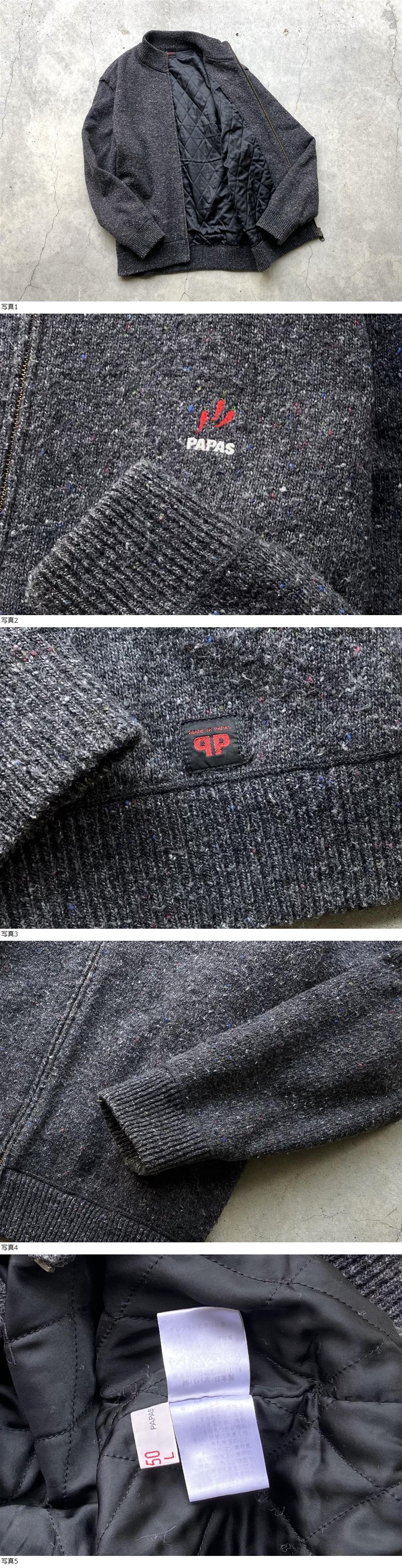 Papas 裏地キルティング ドネガルニットジャケット 50/L パパス メンズ ブルゾン ウール ネップ 刺繍 收藏