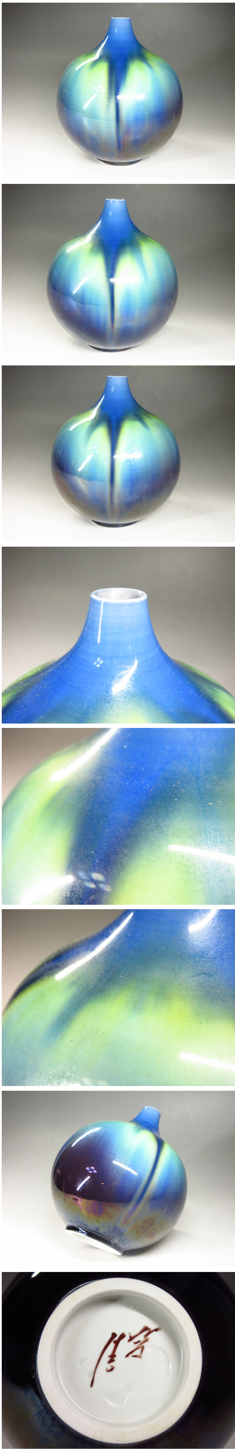 【漸】コレクター委託出品 人間国宝 三代『徳田八十吉(正彦)』造 碧明耀彩壺 壷 九谷焼 茶道具【HY3152】 收藏