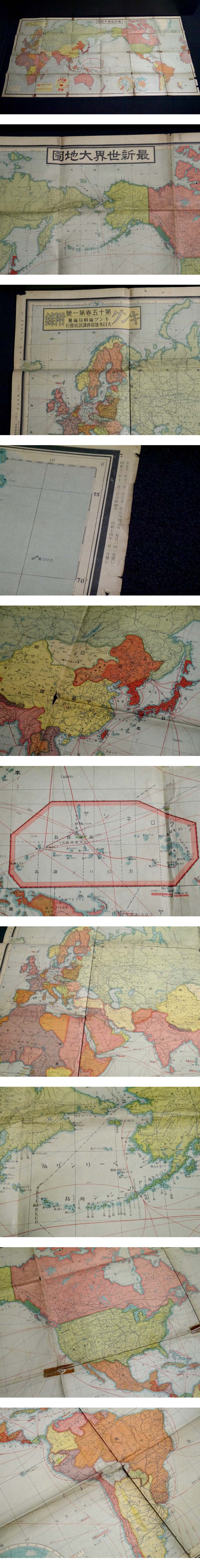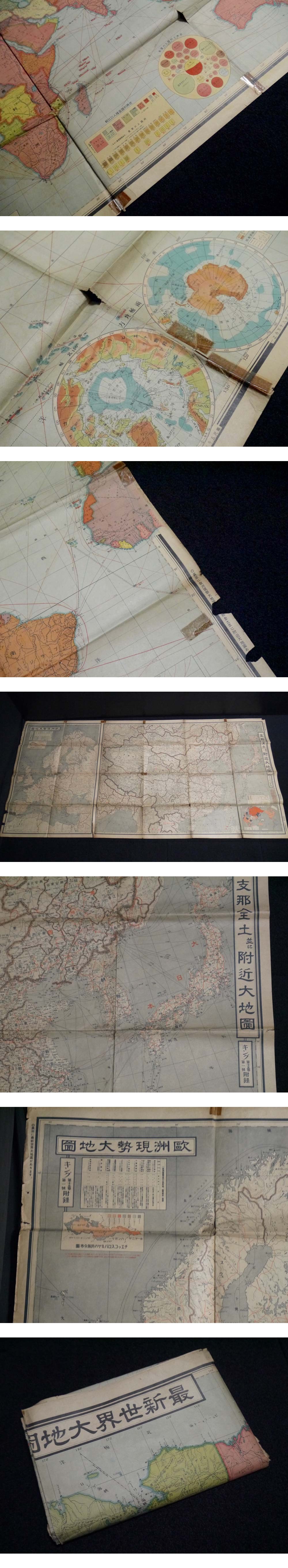 戦前 昭和14年「最新世界大地図」161×78.5cm(商品説明内に詳細画像あり)支那全土並に付近大地図 欧州現勢大地図 資料 歴史 戦争 收藏