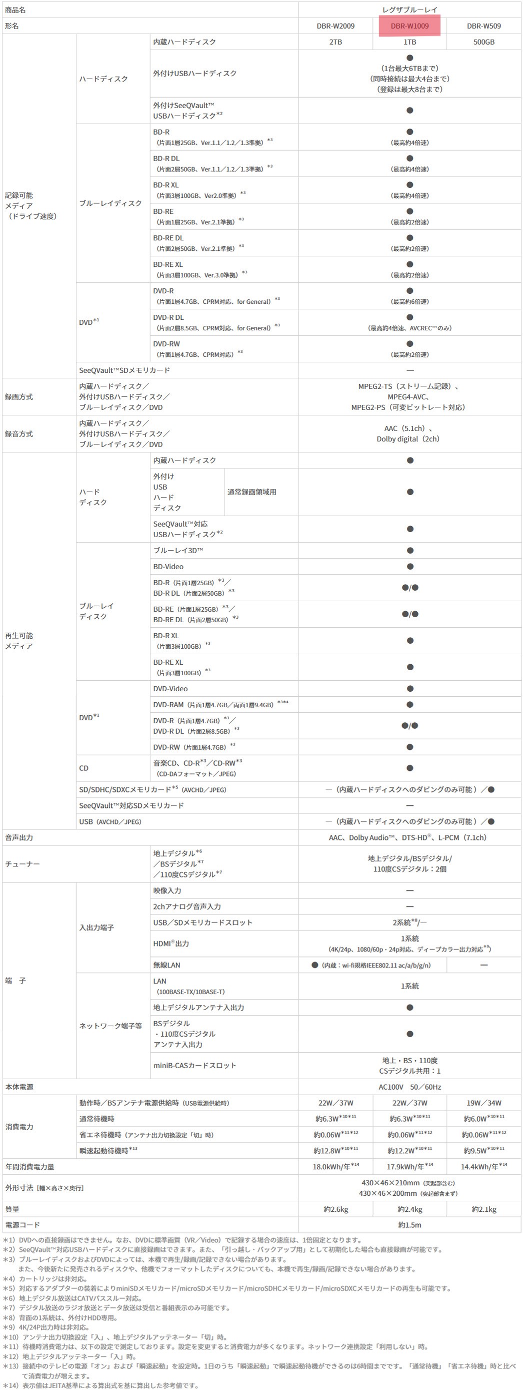 ■メーカー 東芝 ■品名 REGZA ブルーレイディスクレコーダー / DBR-W1009 ■サイズ W430×H46×D210mm(突起部含む) ■製造年 2019年製 ■付属品 リモコン(電池なし)のみです。 ※画像にあるものが全てとなります。(miniB-CASカードの付属はありません) ■詳細 ![]()
