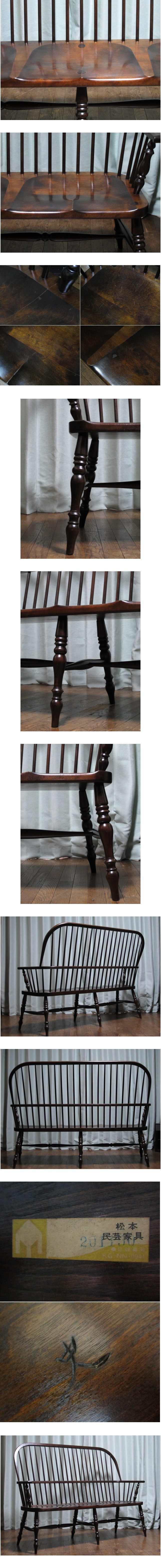 松本民芸家具 ミズメザクラ 楢 無垢材「#513型 長ウィンザーチェアⅢ」3人掛け/長椅子/ベンチ/応接/伝統工芸/和モダン/柳宗悦/河井寛次郎 收藏