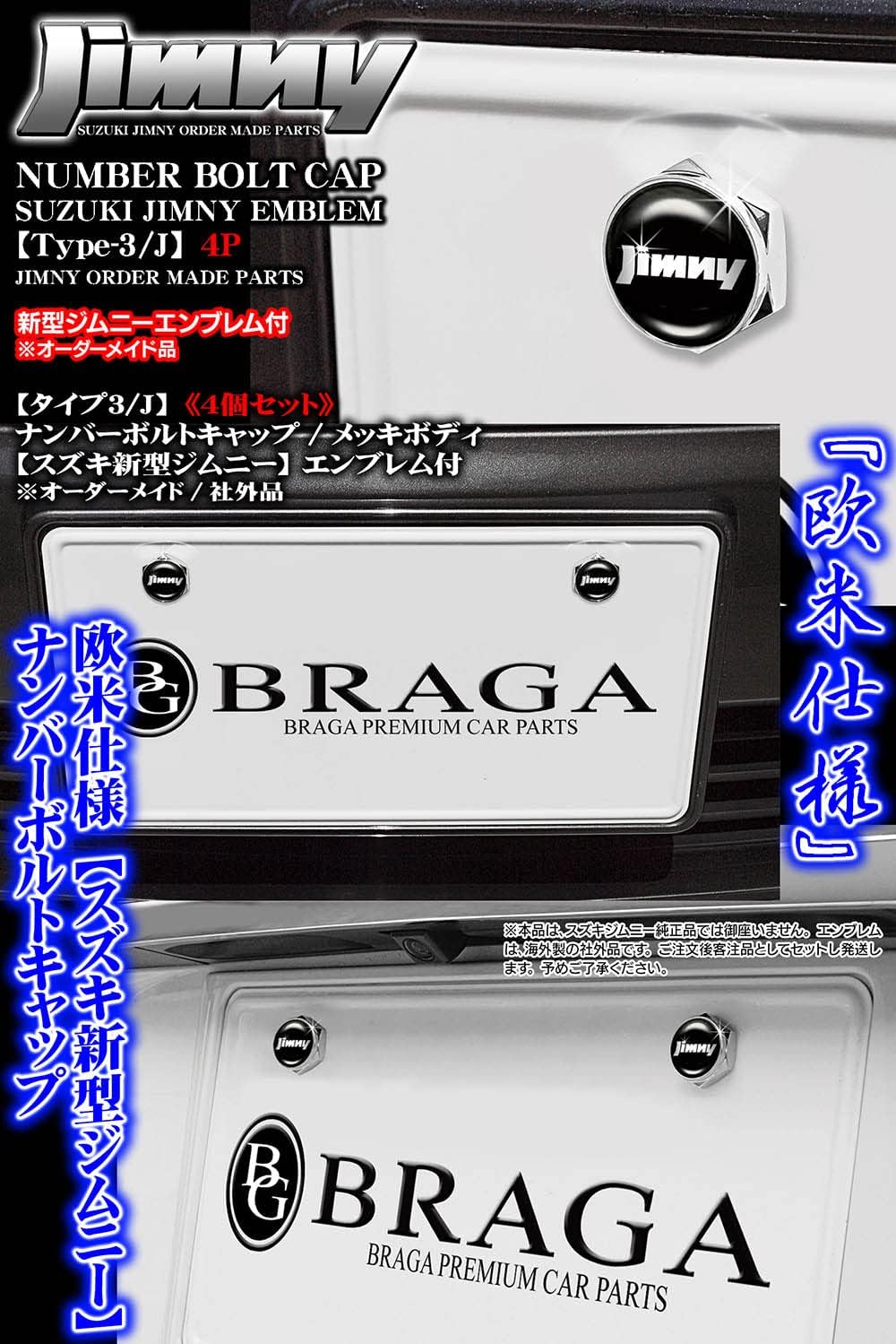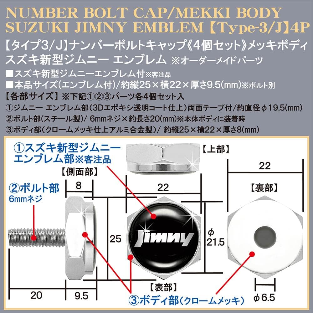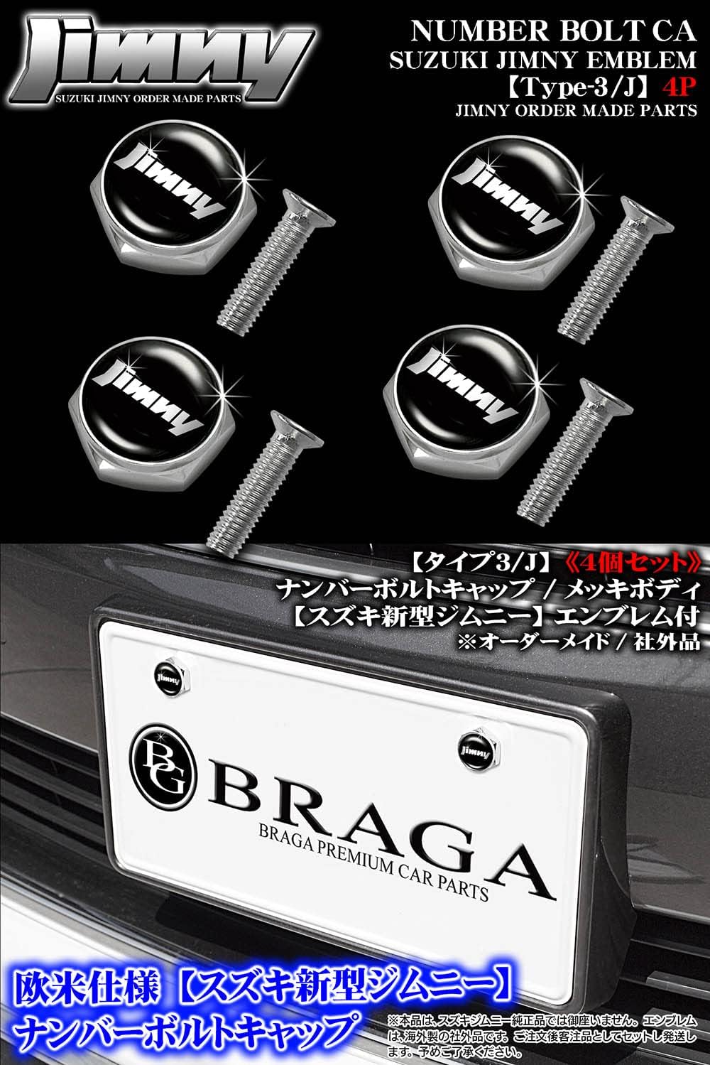 [タイプ3/J2]/4個セット/JB64Wジムニー/Jimnyエンブレム付/メッキボディ/ナンバーボルトキャップ/欧米仕様/ブラガ BG BRAGA 收藏
