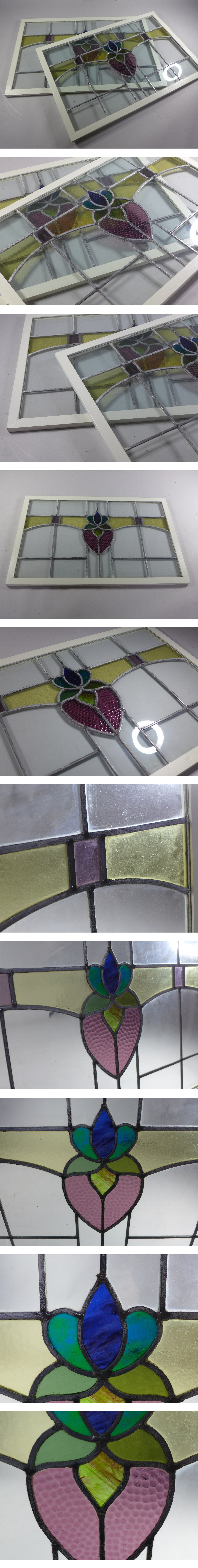 サイズ:約57・3x75cm。窓枠の厚み:約2cm。2枚セットです。窓枠は木製で白いペンキで塗っています。ペンキの劣化有。とても趣のあるアンティークステンドグラスです。ガラスなどの割れはありません。状態など画像参照でお願いします。※他にもアンティークステンドグラスを出品しております。是非ご覧ください★★★★★★★★★★★★★★★★★★★★★★★★★最近、悪質な入札者が多く非常に迷惑をしております。新規IDや「非常に悪い・悪い」の評価の多い方の入札はお断りさせて頂きます。 仮に入札があった場合でも、発見次第入札を削除させて頂く場合がございます。