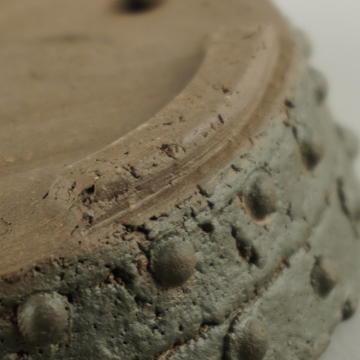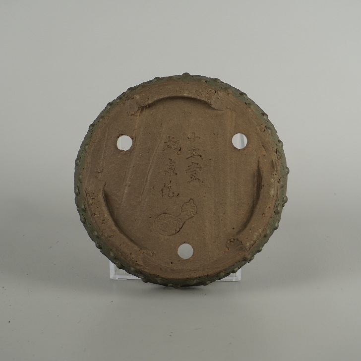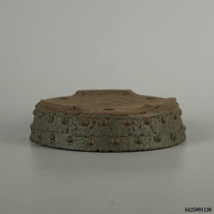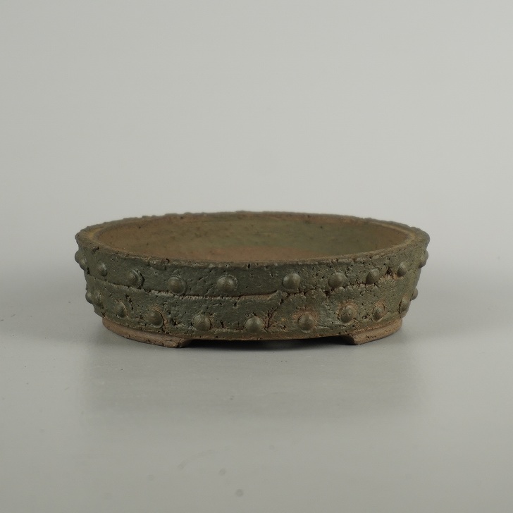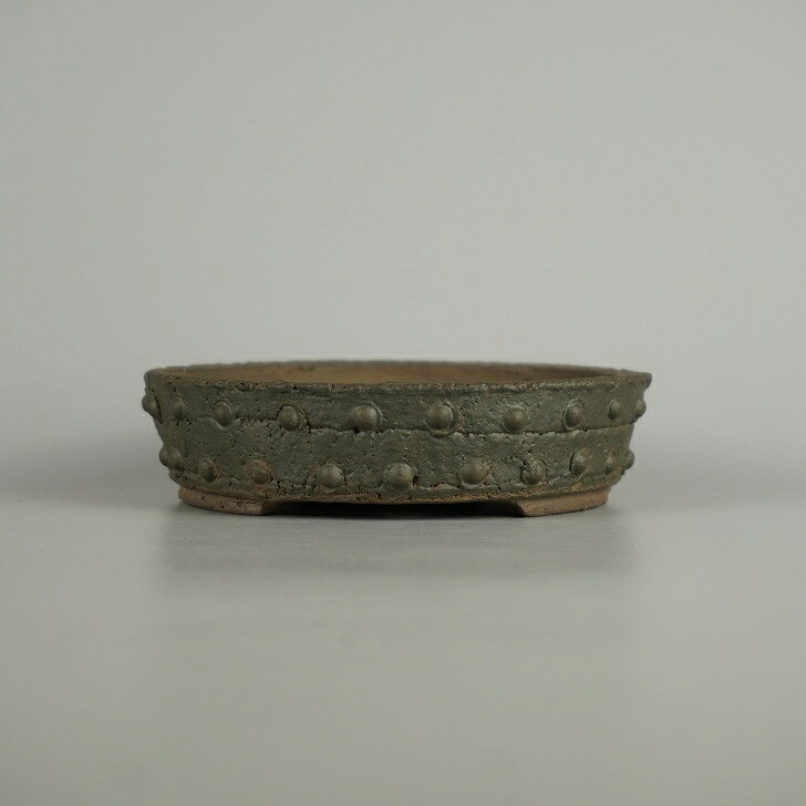盆栽鉢 常滑 十王堂 松泉焼 小型 長辺 約 12.5cm 丸鉢 鋲打 泥物 現品 新品 收藏