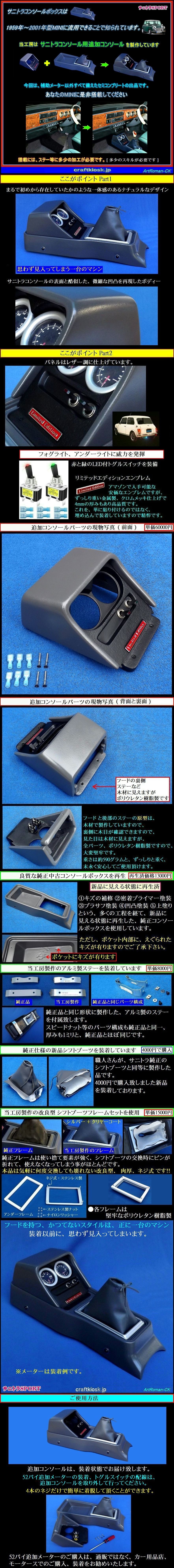 ★サニトラのコンソールボックスは、1959-2001年代の ローバー (オースチン・モーリス) ミニに転用して搭載される方も少なくありませんので、オーナーの方は御検討ください。