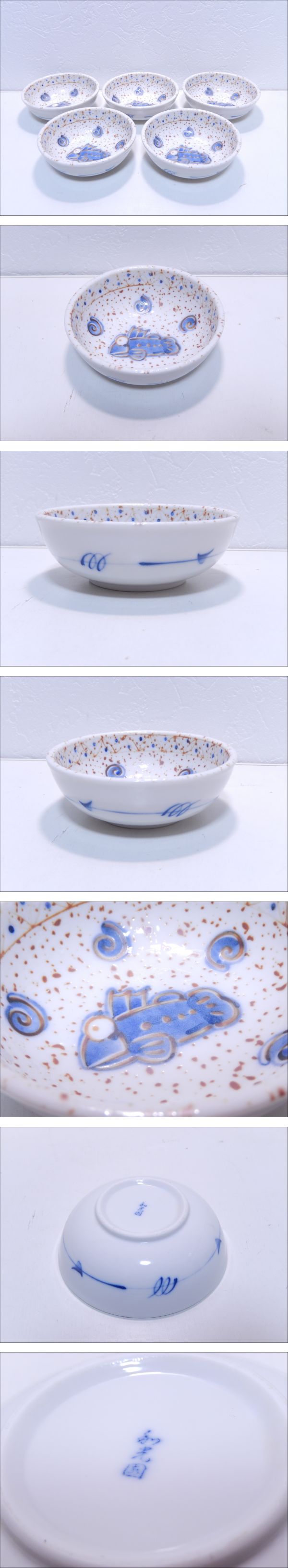 | 【管NA1050】1500円~ 美品 美濃焼 和光園 魚柄 小鉢 5客揃 碗 器 皿 食器 陶器 |