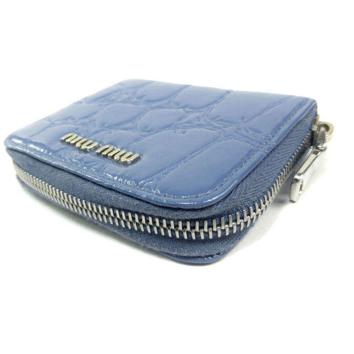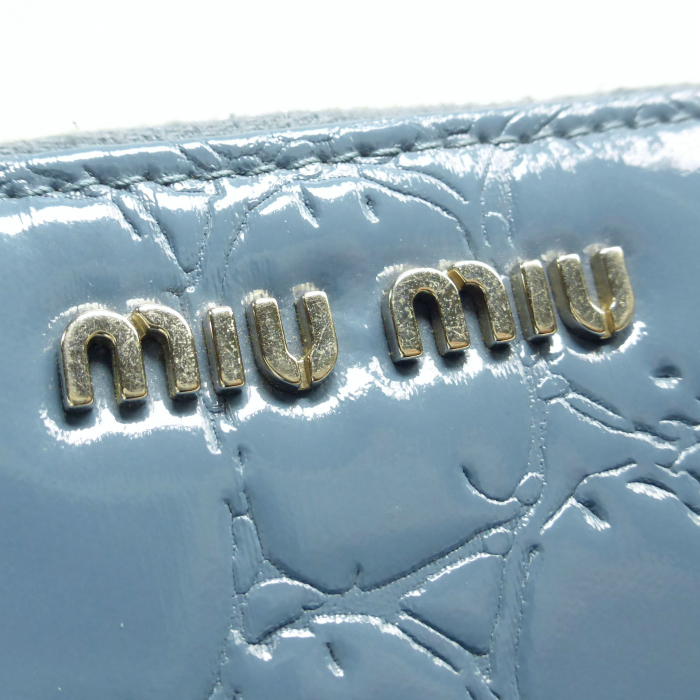 ミュウミュウ (MIUMIU) 型押し コインケース 小銭入れ ライトブルー(中古) 收藏