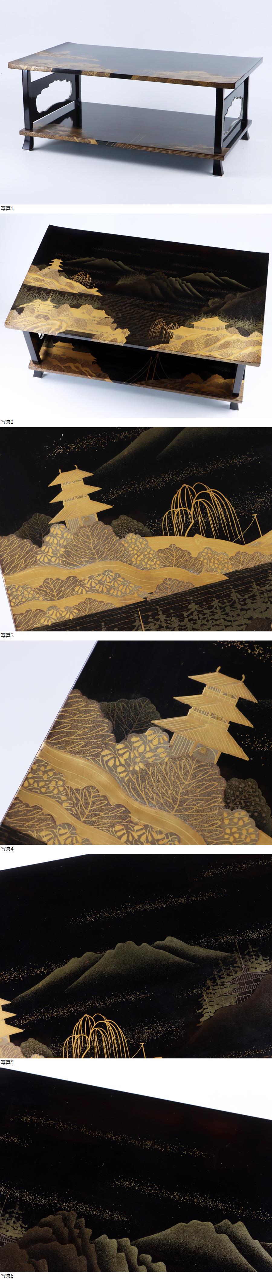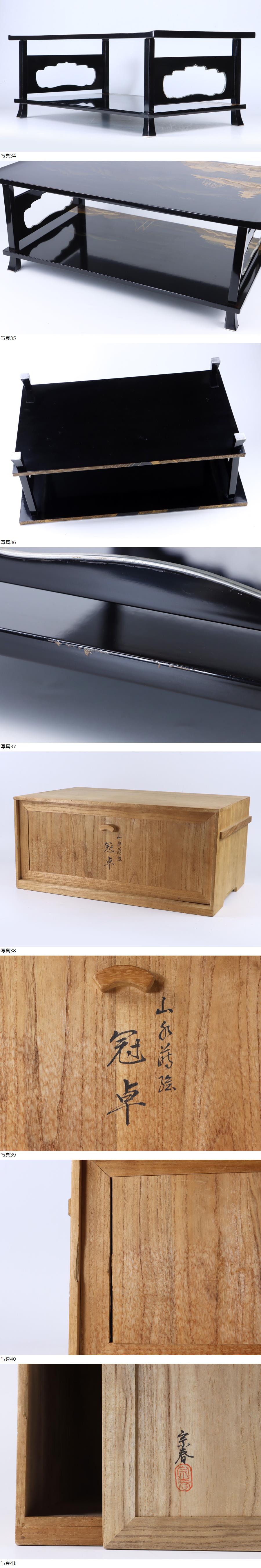 魁◆最上手傑作 本物保証 輪島塗 蒔絵師 名工 久世宗春 山水蒔絵 冠卓 花台 飾り台 宗春本人作 蒔絵台 文台 55×32㎝ 共箱 優美傑作品 收藏
