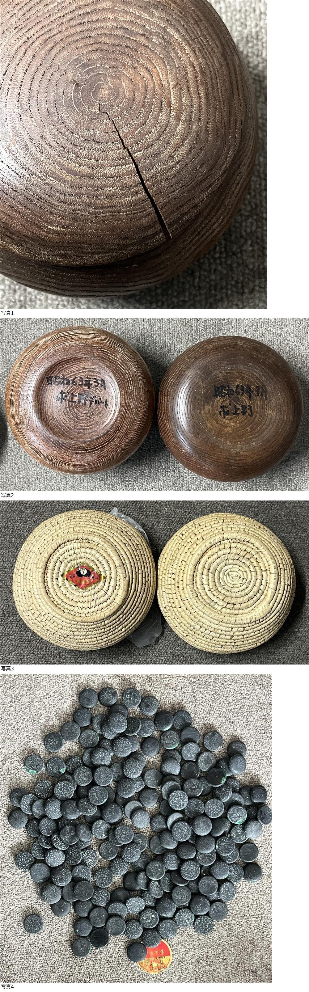 20552 囲碁 碁盤 脚付 碁石セット 碁盤サイズ約41.5㎝×45㎝厚さ約15㎝ 現状品 自宅長期保管品 購入時期のサイン有 傷汚れ有 收藏