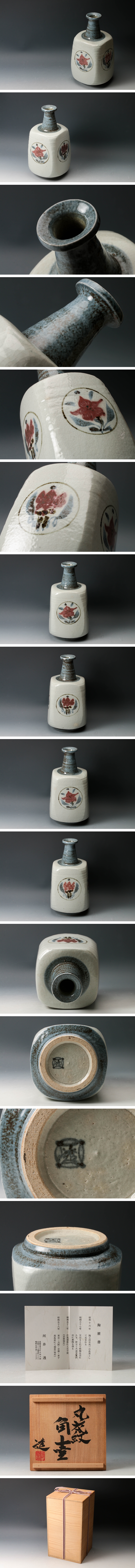 【佳香】河井透 高さ33cm 丸花紋角壷 (大叔父:河井寛次郎) 共箱 栞 本物保証 收藏