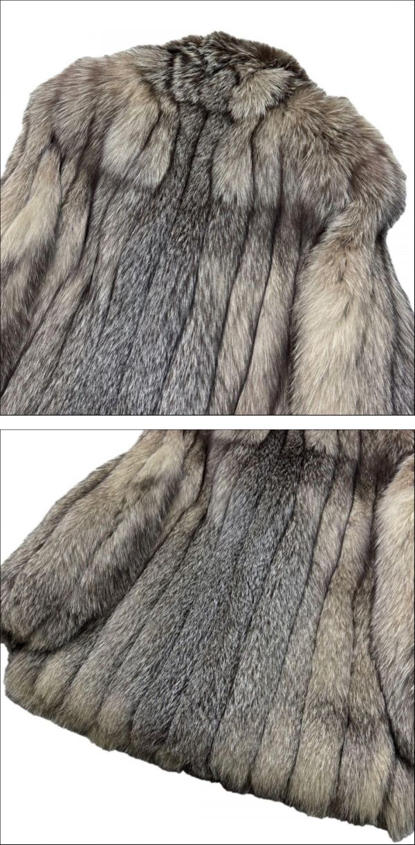 【美品】ブルーフロストフォックス ファーコート Lサイズ相当 総丈77cm 柔らか毛並み 本毛皮 リアルファー FOX アウター ジャケット 收藏