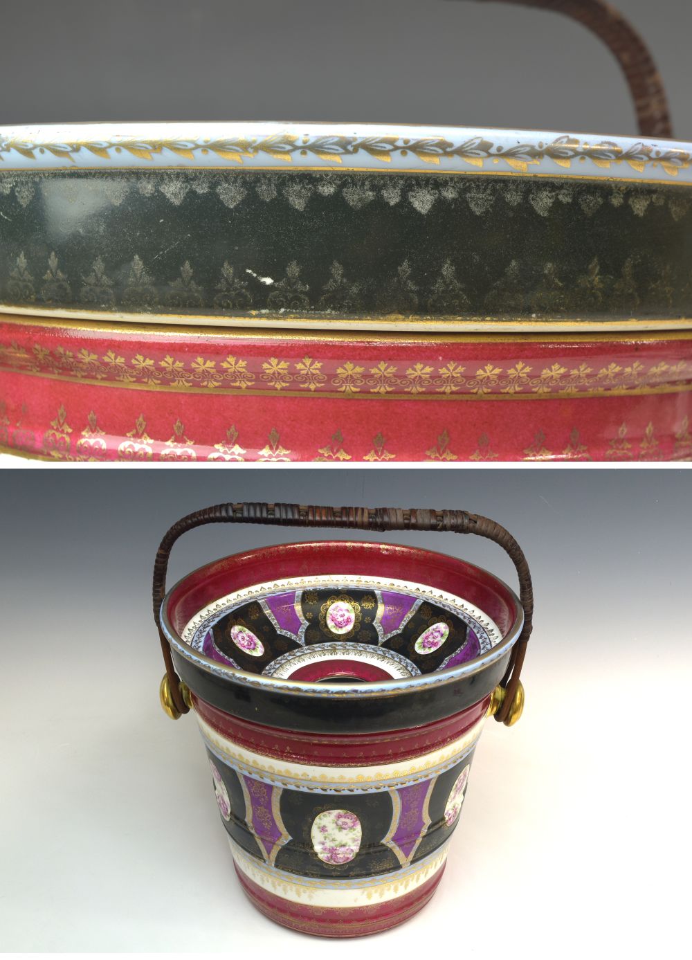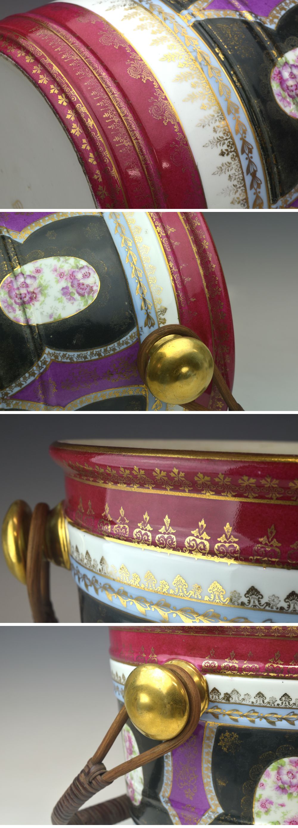 | 商品名 | 時代 ヴィエナスタイル 持ち手付き花文細密金彩花入れ 持ち手含まず高さ28,5cm E2251【趣楽】 | ||