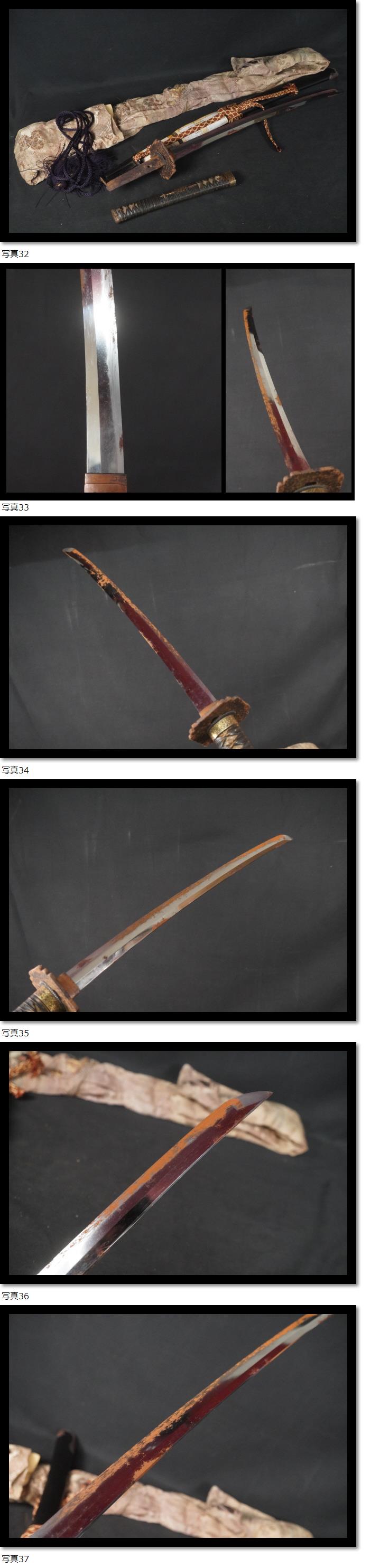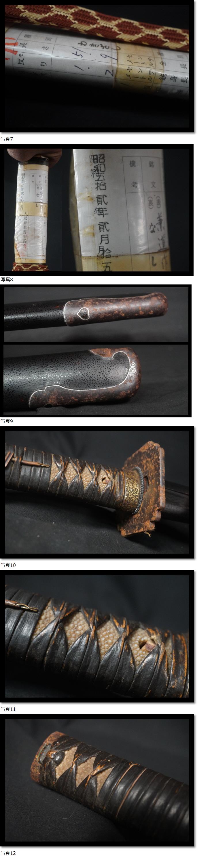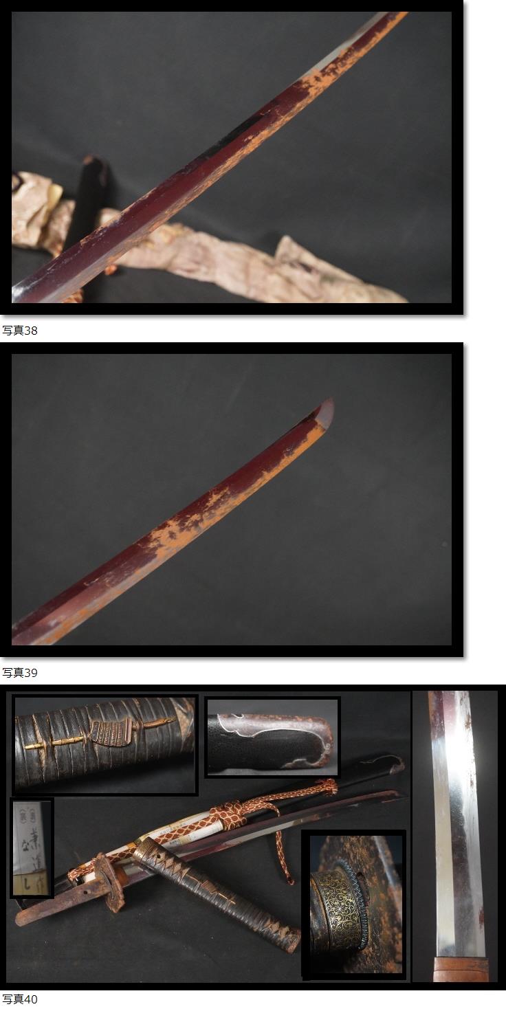 | 金象嵌県 兼道作 脇差 日本刀 和骨董 武具 刀装具 登録書有り 革巻き柄 鍔 |
