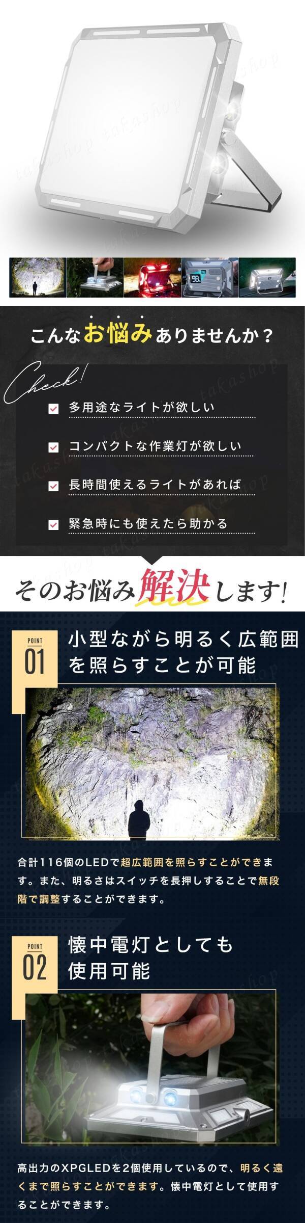 投光器 LED 作業灯 ランタン ワークライト 超高輝度 3色切替 Type-c充電 懐中電灯 多機能 防水 防塵 磁気 マグネット SOS 夜釣り エギング 收藏