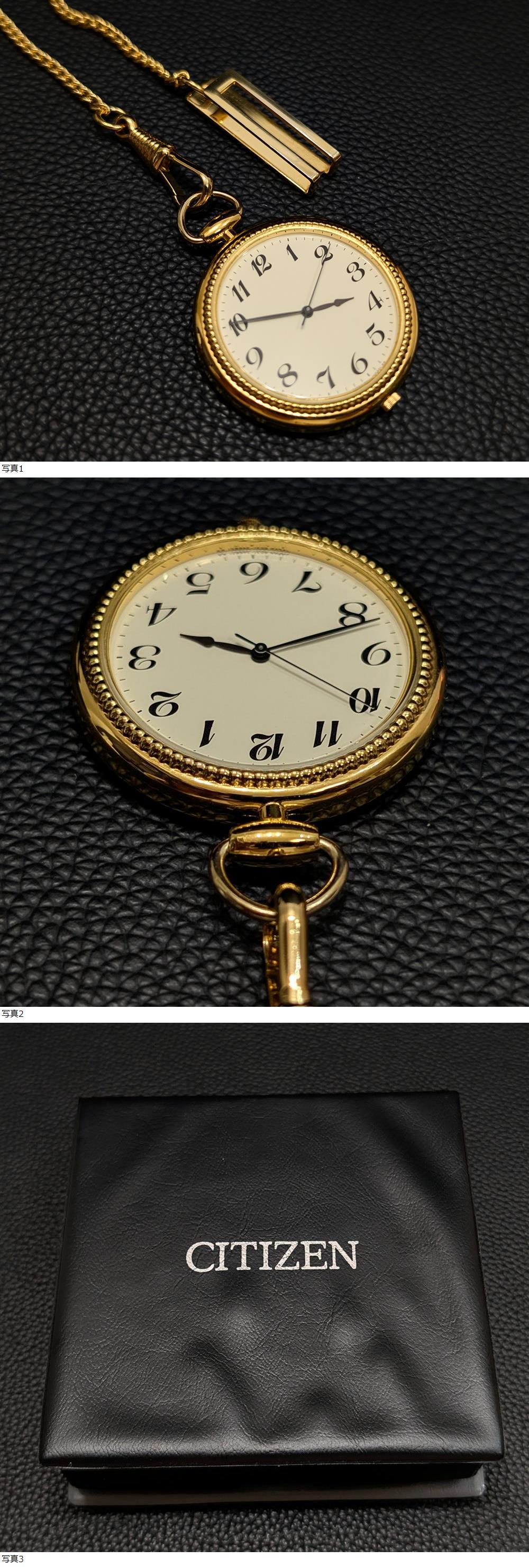 超美品 新品電池 シチズン 懐中時計 CITIZEN POCKET WATCH ポケットウォッチ ゴールド GOLD メンズ クォーツ 6031-343557 箱 保 説 收藏