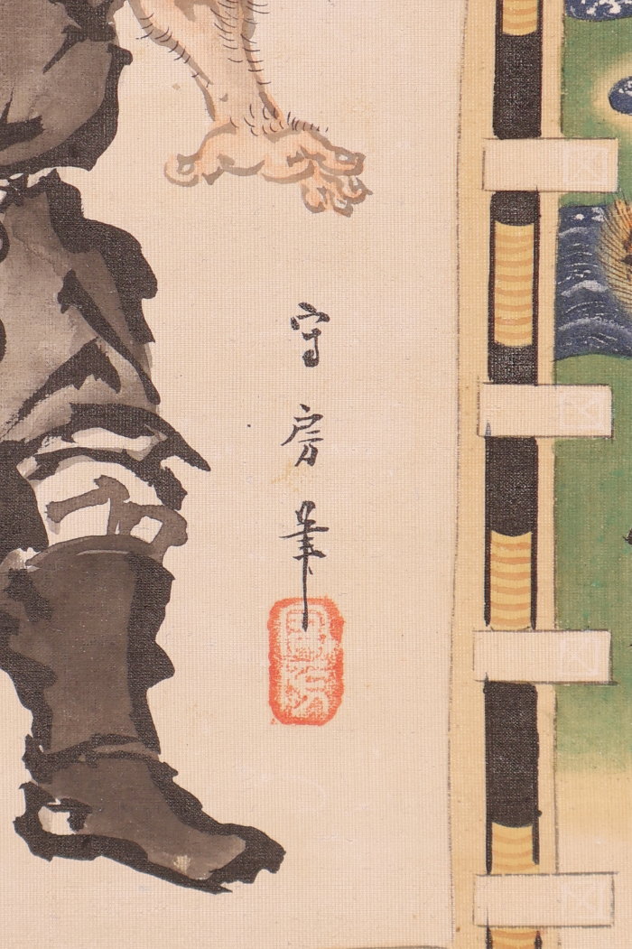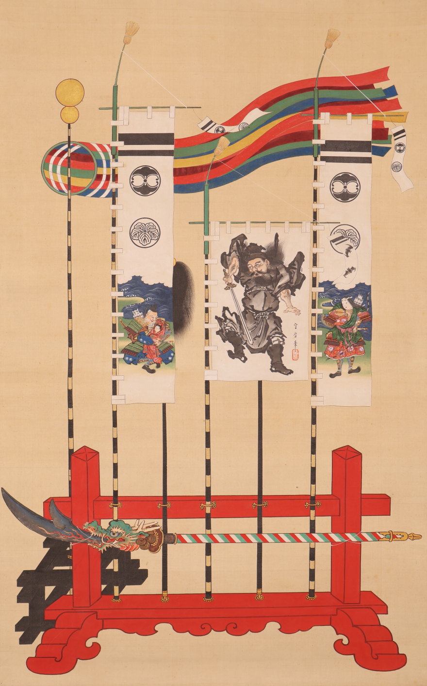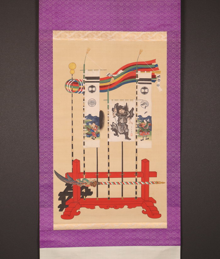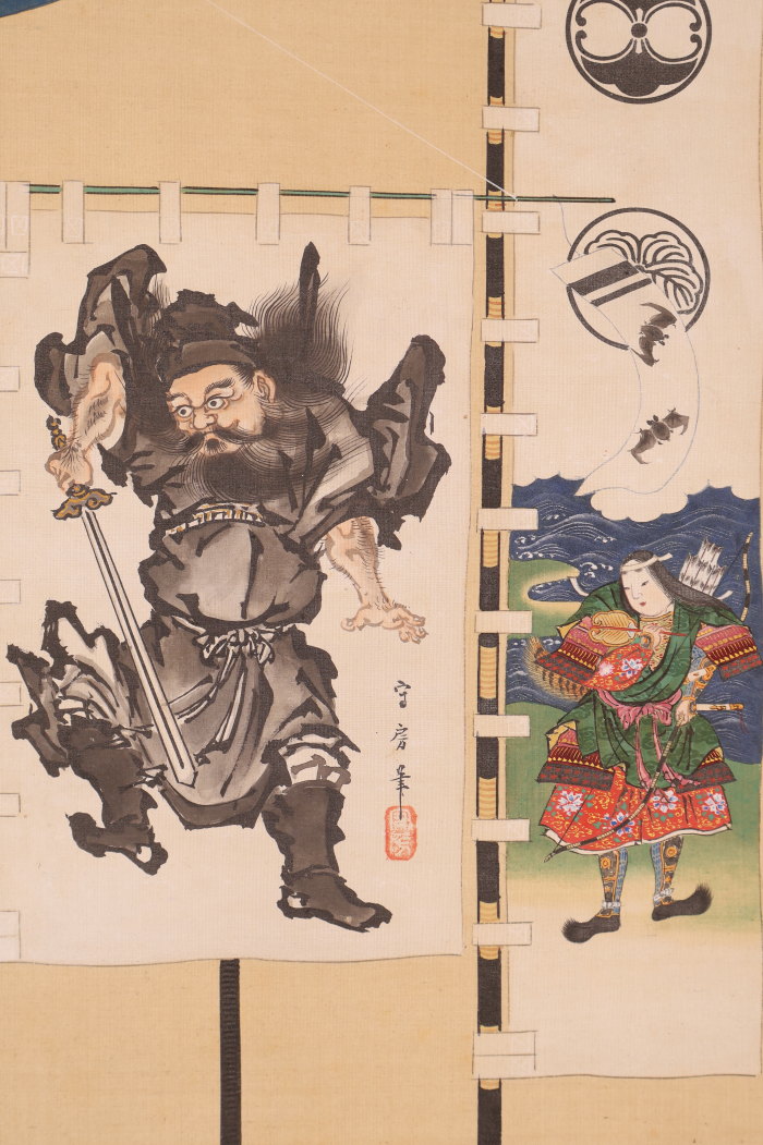 【模写】【伝来】ts2083〈守房〉のぼり旗図 端午の節句 五月掛 隠し落款 神功皇后と武内宿禰 鐘馗 新羅遠征 古代日本伝説上の忠臣 厄除け 收藏