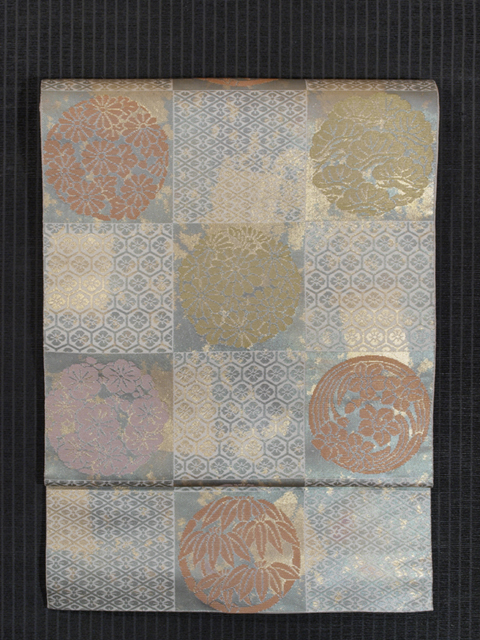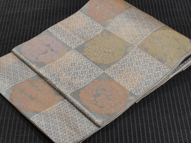 【服部織物】市松格子縞に花丸文 西陣織 袋帯 TAEI02010風楽 |