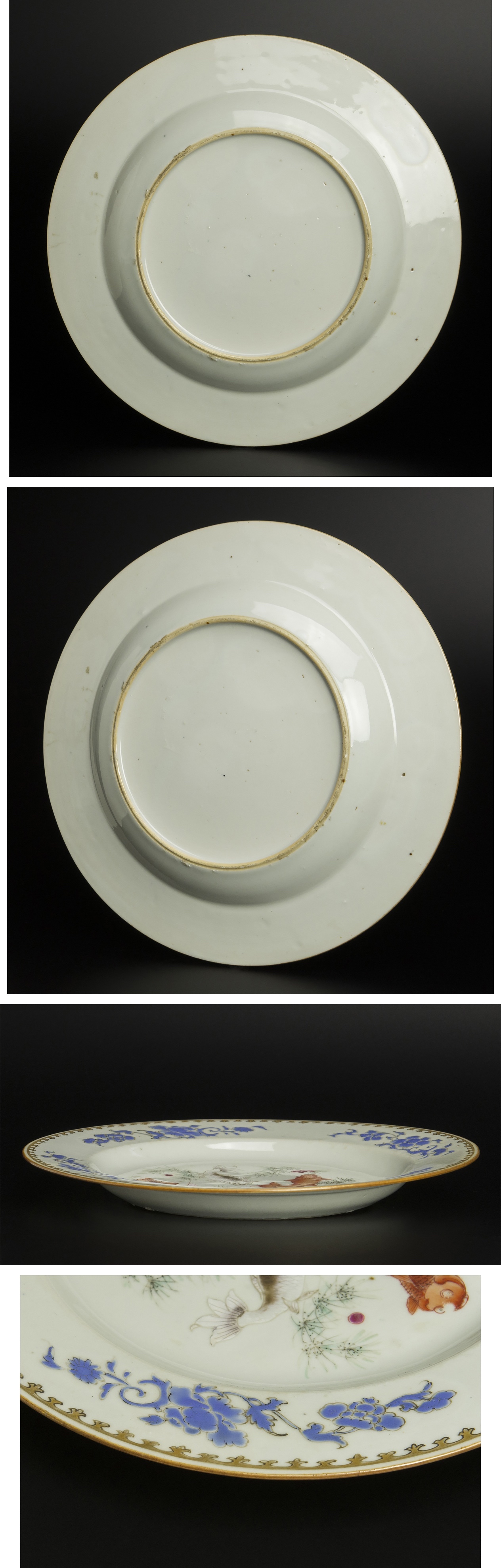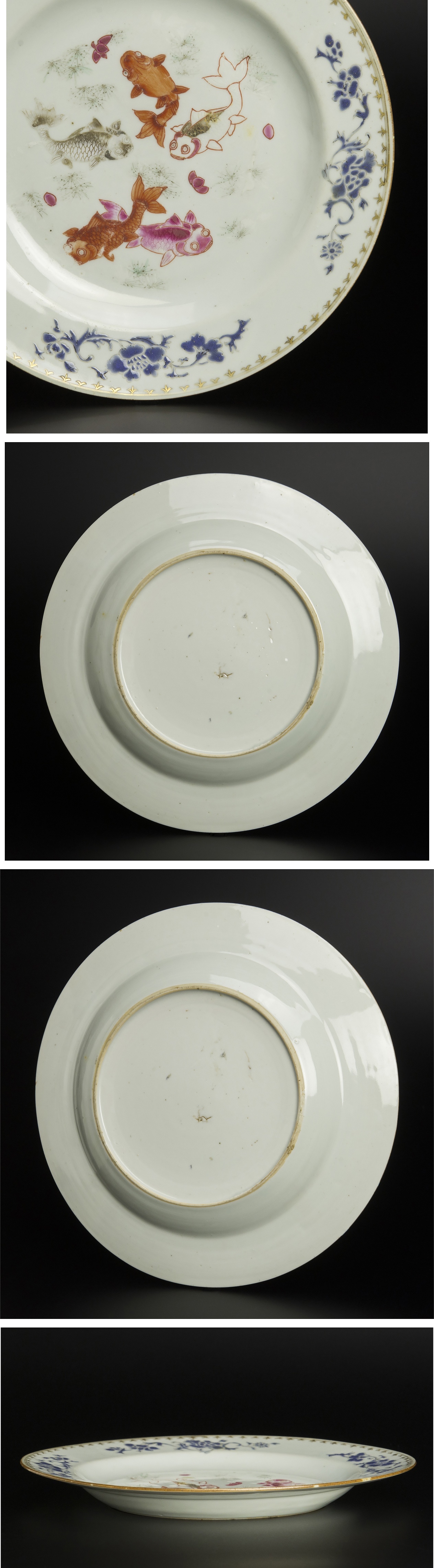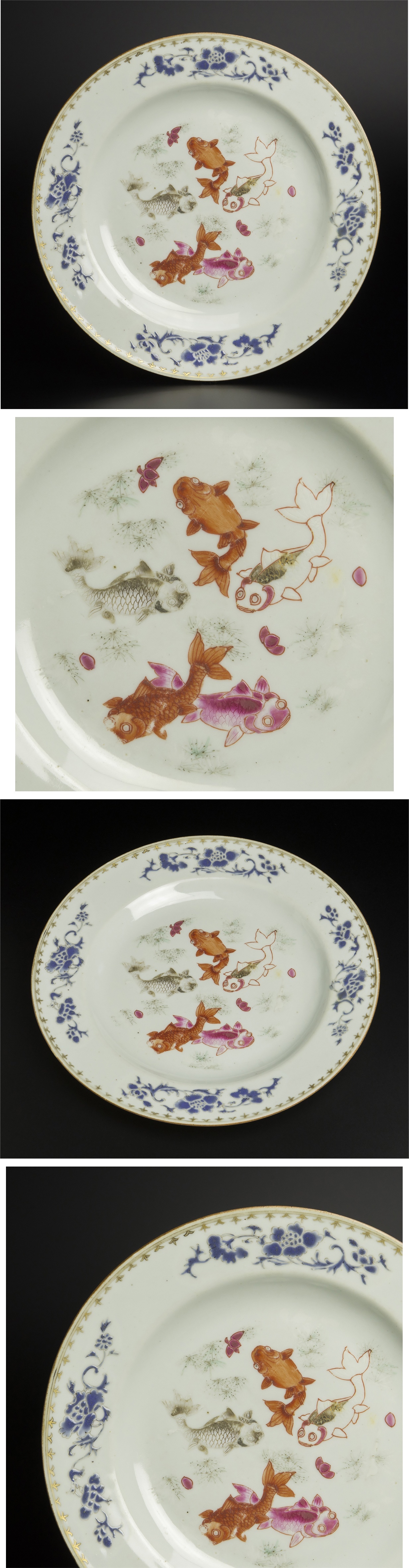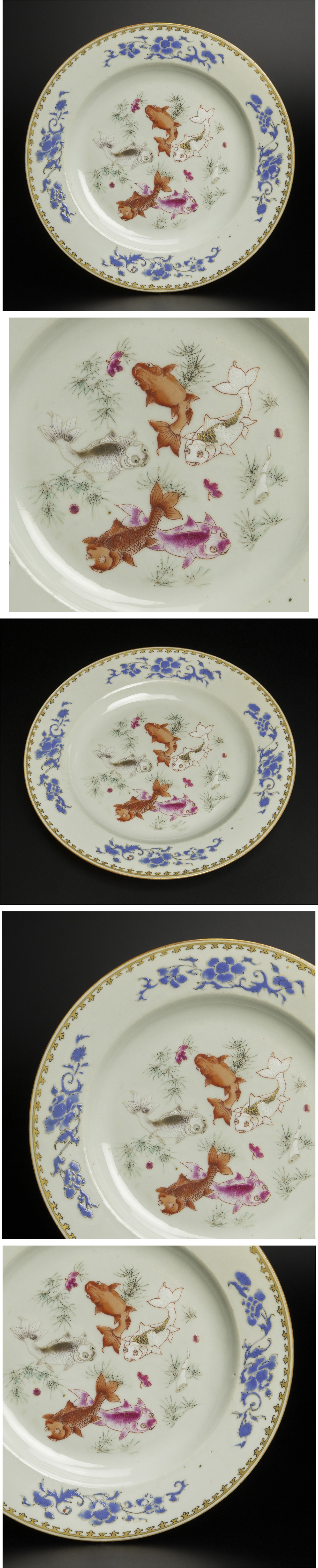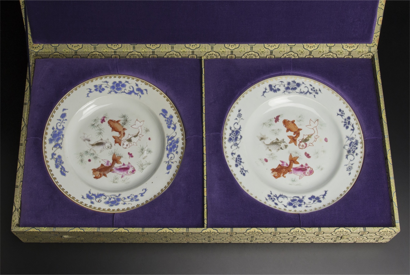 清 粉彩金魚紋盤 二件 共箱 外銷瓷 中国 古美術 收藏