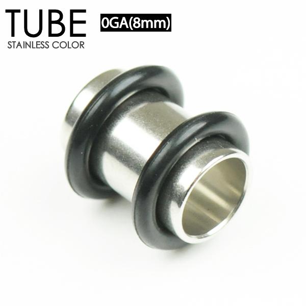 チューブ 0G(8mm) アイレット サージカルステンレス316L ボディピアス 両側をゴムで固定 ホールトゥー イヤーロブ 定番 0ゲージ