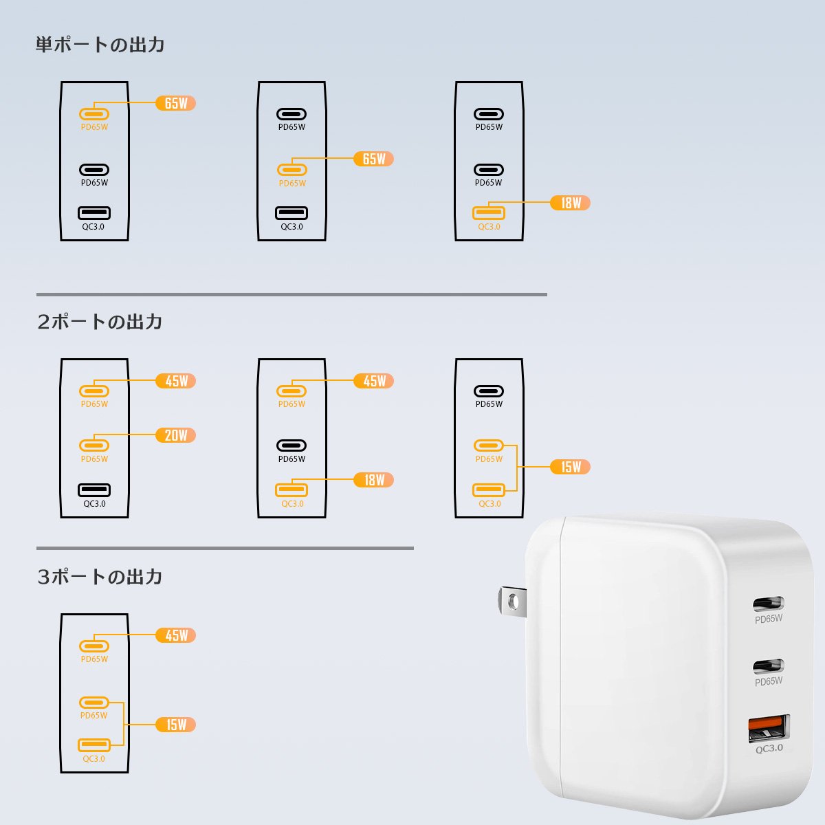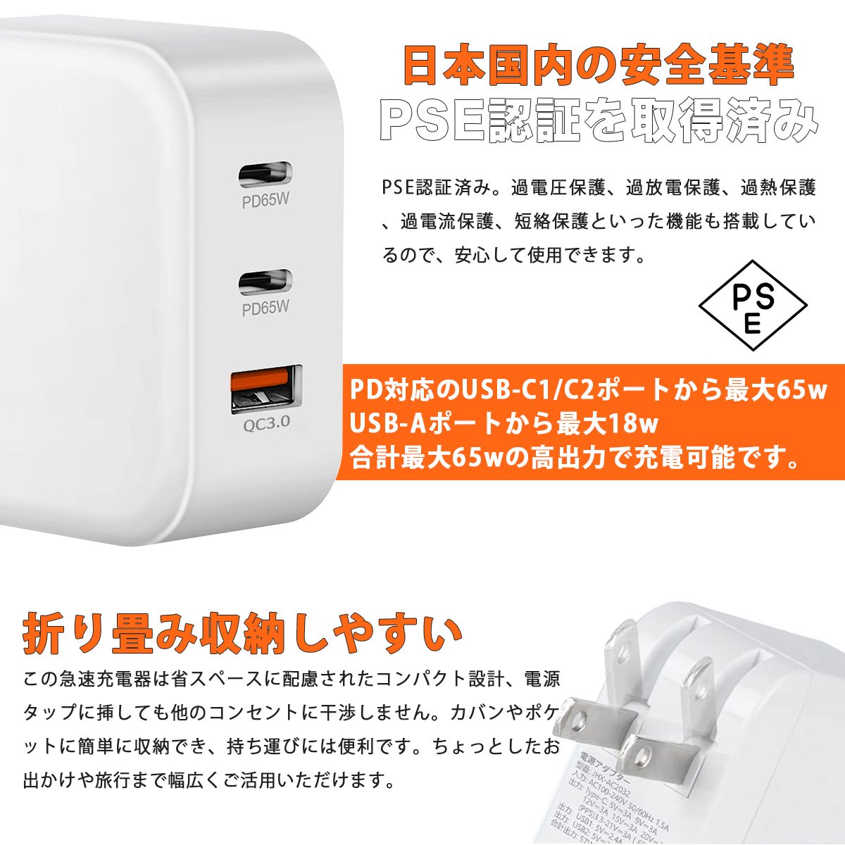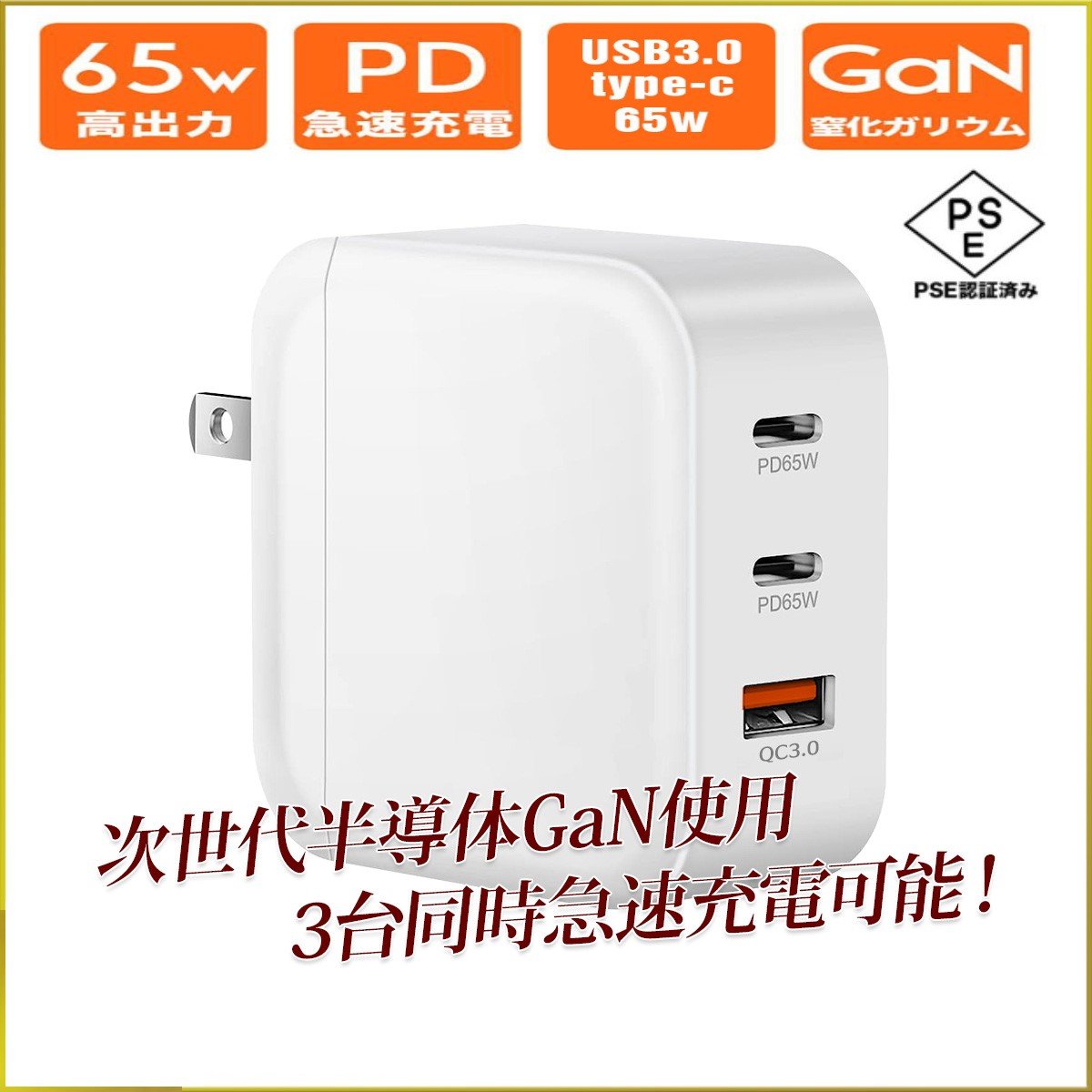 ★PSE認証済 ★急速充電器 3ポート PD充電器 65W USB QC3.0対応 折りたたみ式プラグ 窒化ガリウム素材使用 ACアダプター【定形外送料無料】 收藏