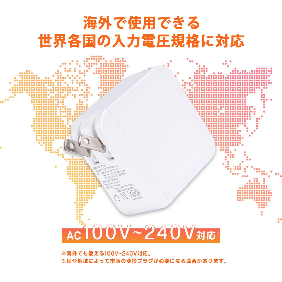 商品の詳細 | ★★3台同時充電可能!USBポートが3台搭載されている小型充電アダプタです。 iPhoneやiPad、Android、各種スマホ、タブレットPC、オーディオプレーヤー、モバイルバッテリーなど、USB接続充電の端末全てに対応可能。 【折りたたみ式プラグ】:コンセントプラグ部分は折り畳み出来るので、持ち運び時もカバンの中に綺麗に楽々収納。 【PSE認証済み】:日本国内安全基準PSE技術基準適合品です。 ※海外でご使用の際は、渡航先により別途プラグ変換アダプタをご用意ください。 【65W超急速充電】:電源プラグは接続された機器を自動的に検知し、最適な電流を供給します。 合計最大65W出力となりますので、スマホなどは短時間(45分80%まで)急速充電が可能です! また、高温や防火に優れたABS+PC素材を使用し安全性を高めています。 【多重保護機能付き】:過熱保護、ショート保護、過電圧保護、落雷保護、パワー過剰保護、 過電流保護等の保護機能が多数揃えていますので、お使いのデバイスと充電器本体の安全をしっかりと守ります。 ◆商品仕様◆ コネクタタイプ:USB 対応デバイス: MacBook /Windows PC /ノートpc /iPad /iPhone /Androidなど機種に対応! 対応モデル: IPhone 15 /MacBook /Windows PC /ノートpc /iPad /iPhone /Androidなど機種に対応! 入力電圧:110~240 ボルト USBポート数:3ポート 安全基準:PSE 窒化ガリウム素材使用 カラー: ホワイト | |