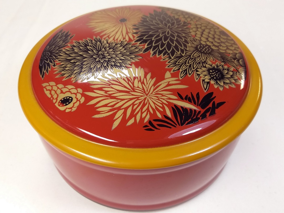 ●簡要説明:この出品は、手工芸金粉漆器彩絵おひつ ひとり用 一人びつ メラニン製品 御櫃 和食器 わっぱ『唐花紋・天竺牡丹』 ●落札4客セット 日本製 新古品です。
