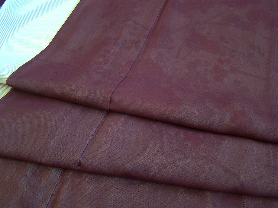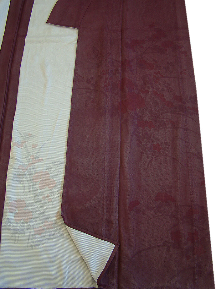 | 商品説明 | こちらのお品は「二重紗」ですので、5月、6月、7月、9月にお召頂ければと思います。 とてもしなやかなさらっとした滑らかな手触りの涼やかで柔らかな風合いの二重に施された 透ける素材が2枚重なり合った「二重紗」の生地の高級訪問着です。 表地は渋い葡萄色地の無地、 裏地は灰白色地に花草柄の染柄、 ※申し訳ございませんが二重紗のお直しは承っておりません。 |