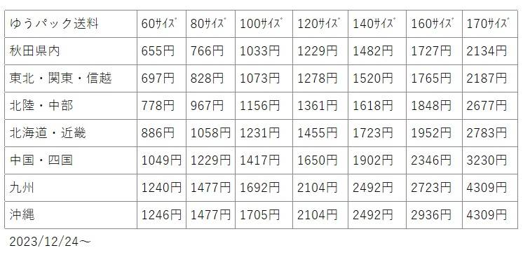 ⇒ゆうパック送料は、末尾に記載の宅配便送料早見表をご覧ください。
