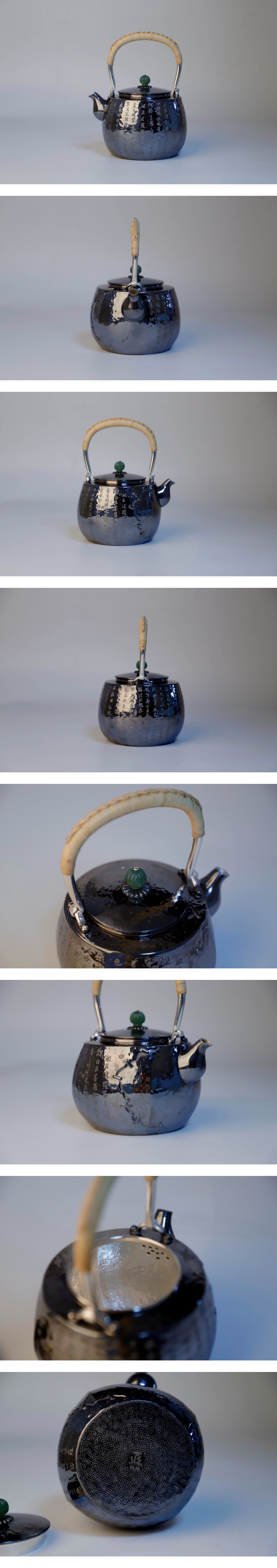 時代 純銀製 北村静香造 般若心経文彫 玉摘 湯沸 工芸品 古美術品 銀瓶 煎茶道具 重715g 收藏