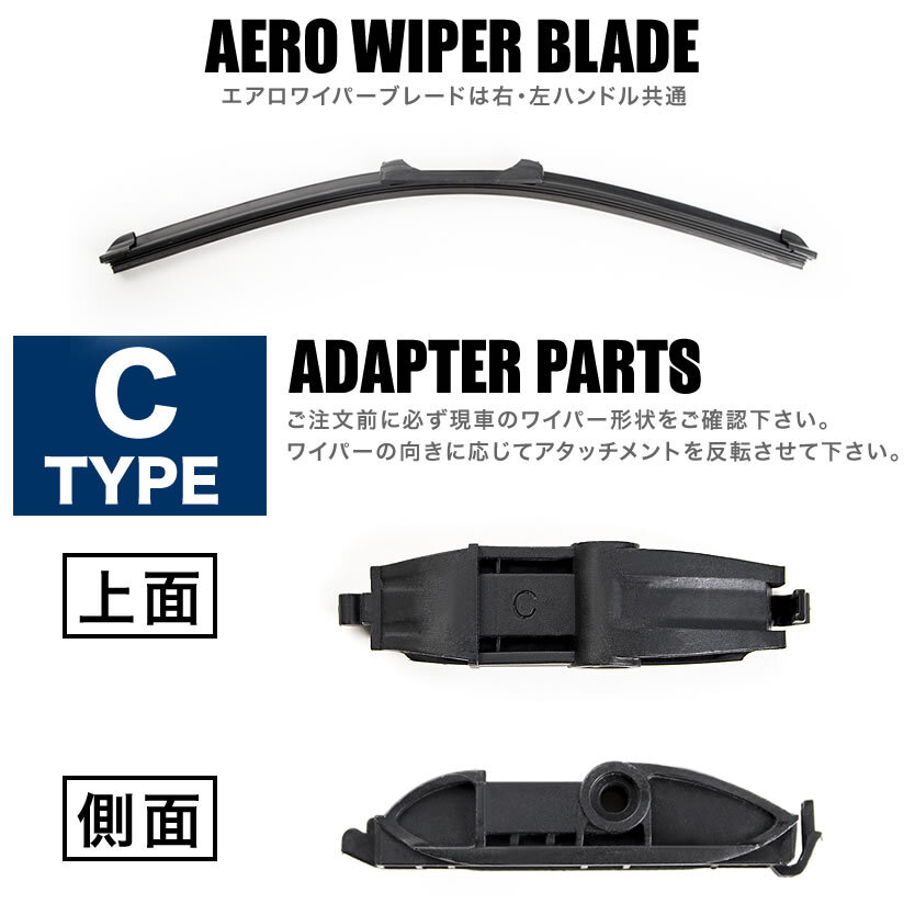 | 社外品となります。 ワイパーをスタイリッシュに! スタイリッシュなエアロワイパーでフロントビューをさりげなくドレスアップ グラファイトより長寿命なフッ素樹脂(PTFE)コートラバー採用。 ハンドル向きは関係なく取り付け可能! 付属アタッチメントが反転できるので左右のハンドル向きに対応です ・製品保証付き(発送から1ヶ月間のみ) 【確認事項】 車検証の初年度登録年月で判断せず、必ず商品画像のアダプターを現車と適合判断して下さい。 不明の場合は現車のワイパーの取付部の画像を弊社まで連絡ください。 ※ガラスの湾曲でワイパーの端が浮いた状態になる場合があります。 ※純正サイズと長さが異なる場合があります。 ※スノーワイパーではありません。積雪状態で使用すると破損します。 ※ブレード一体型の為、ゴムのみの交換はできません。 |