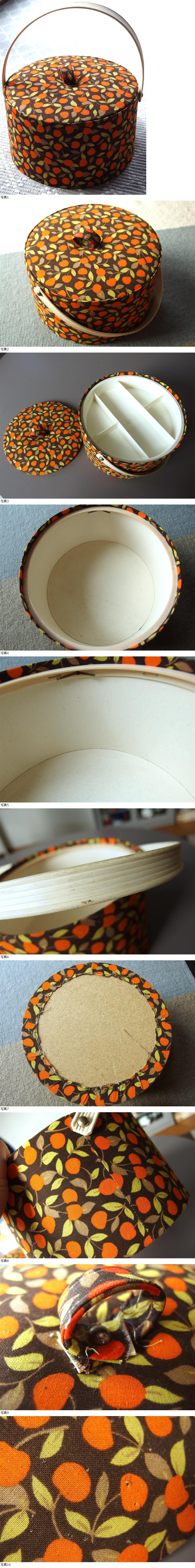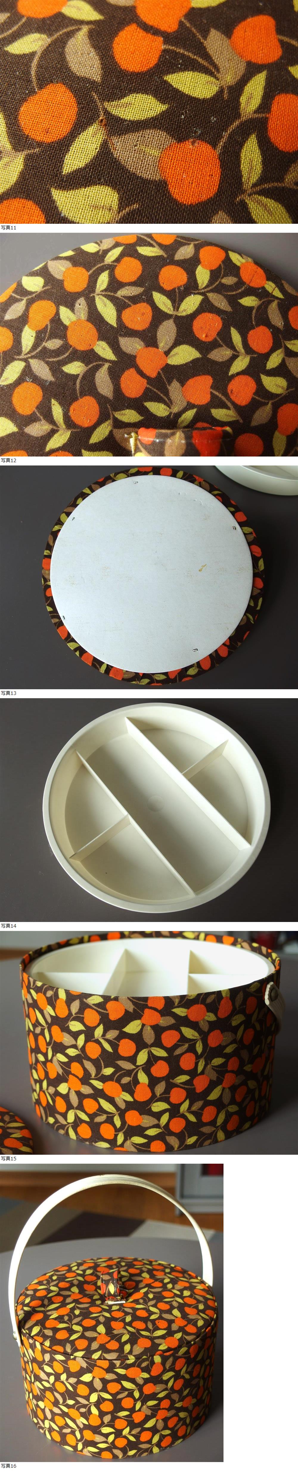 スイス製 アンティーク ヴィンテージ&レトロ ソーイングボックス 裁縫箱、小物入れ (オレンジ色のさくらんぼ、丸形) 收藏