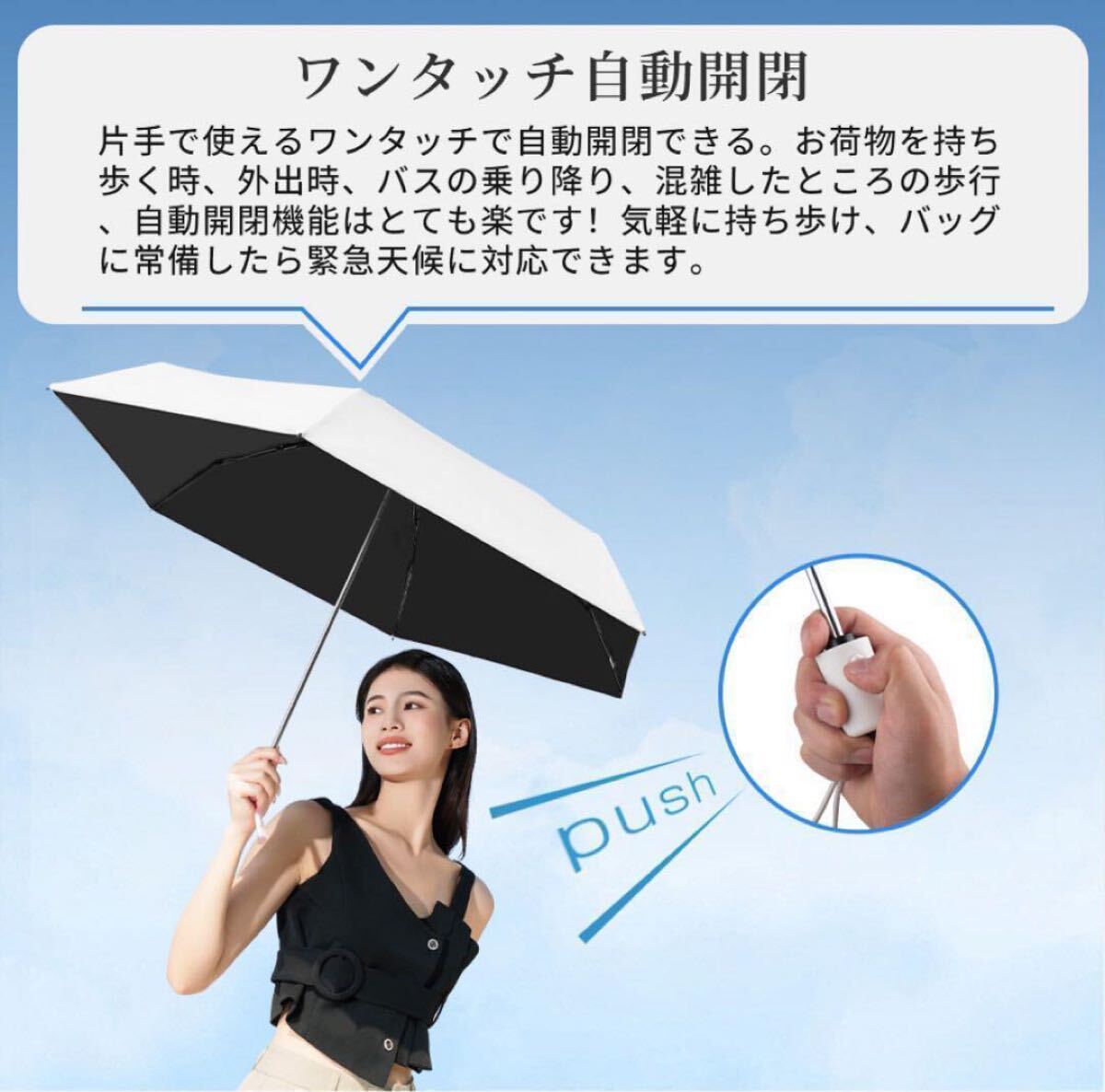 折り畳み傘 日傘 傘 晴雨兼用 ホワイト 軽量 コンパクト ワンタッチ開閉 收藏