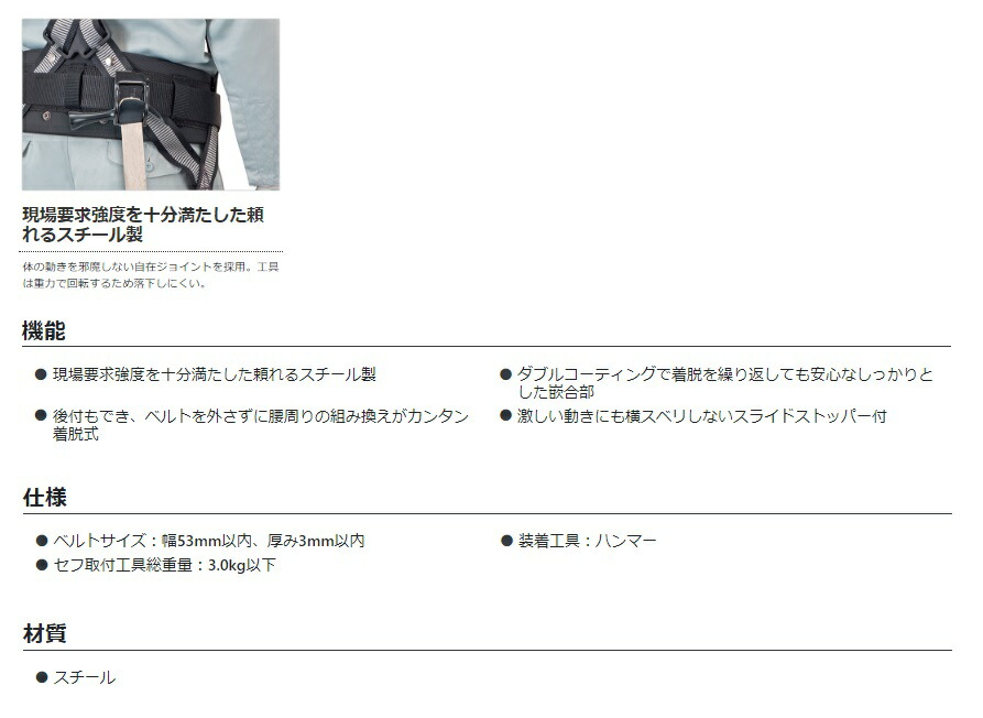 タジマ 着脱式工具ホルダースチール ハンマー横 SFKHI-HH 製品重量210g セフ取付工具総重量3.0kg以下 スTJMデザイン 263155 收藏