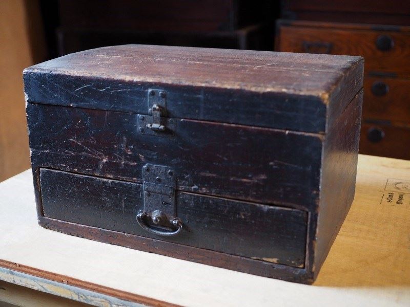 江戸時代の蓋付抽斗箱 小物入れに 古録展 送料別 Dサイズ 中古 品番H1563 收藏