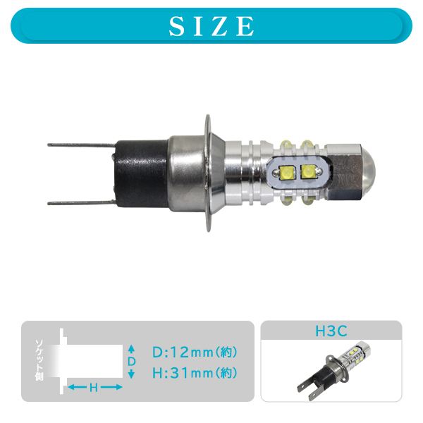Б 【メール便】 交換用に! 高輝度 フォグランプ LED バルブ [ H3C ] XT-Eチップ アルミヒートシンク CREE製 ホワイト 6000K 2個 50W 收藏