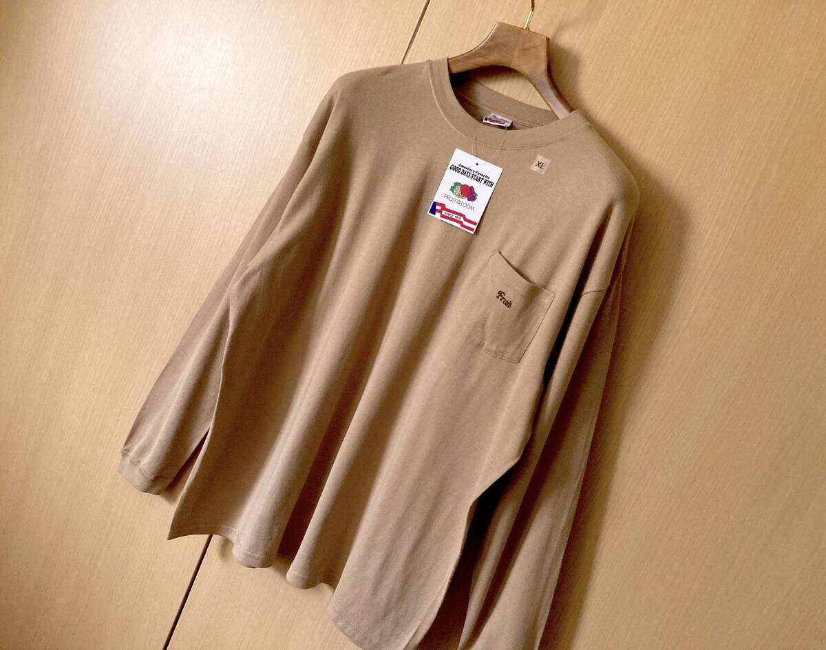 XL サイズ★ FRUIT OF THE LOOM / 着心地抜群/ ポケット付 ロゴ ロングスリーブ Tシャツ / ベージュ / フルーツオブザルーム ロンT 收藏