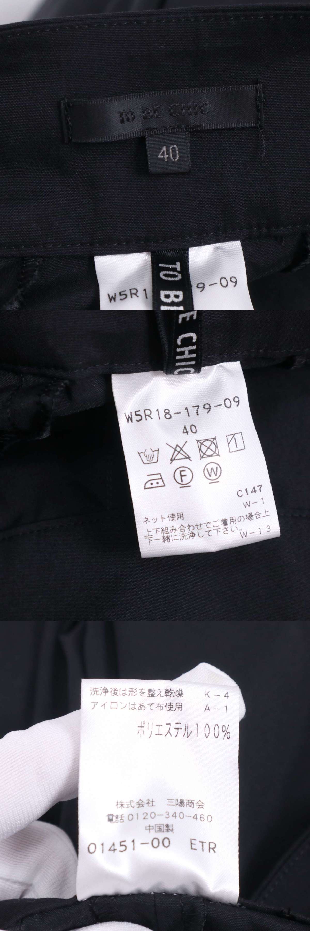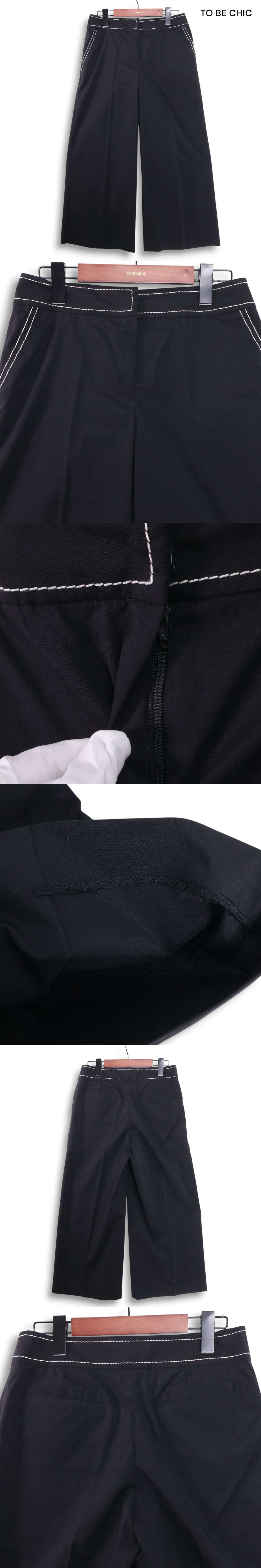 TO BE CHIC トゥービーシック 春夏 ストレッチ★ ステッチ ワイド パンツ Sz.40 レディース 黒 K5B00219_3#P 收藏