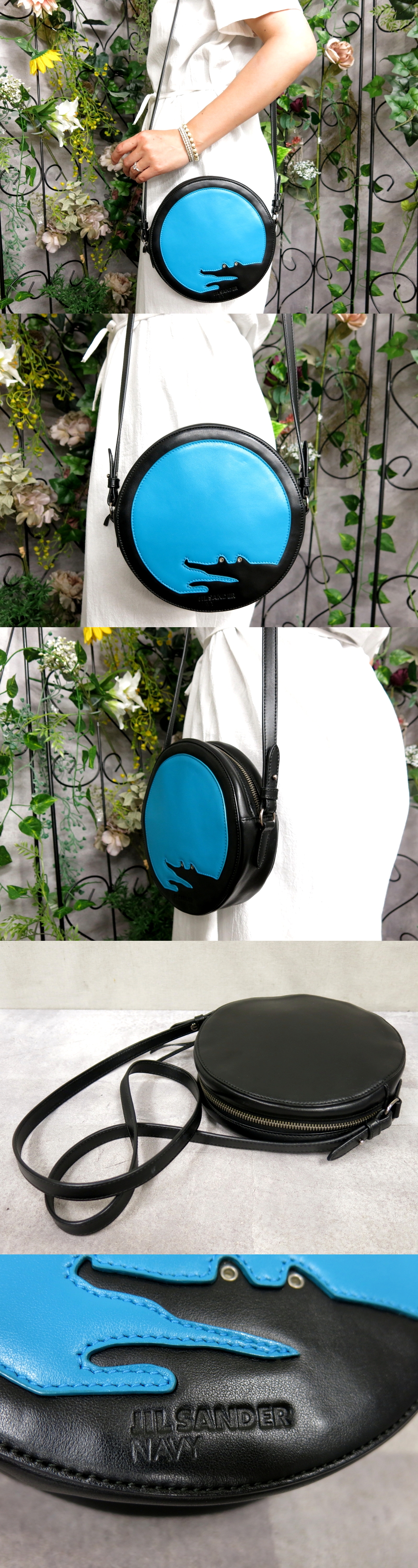 ●超美品●JIL SANDER NAVY ジル・サンダー●ラウンド●ワニ●カーフ レザー 本革●ショルダー バッグ●黒 シアン●シルバー金具●Js57531 收藏